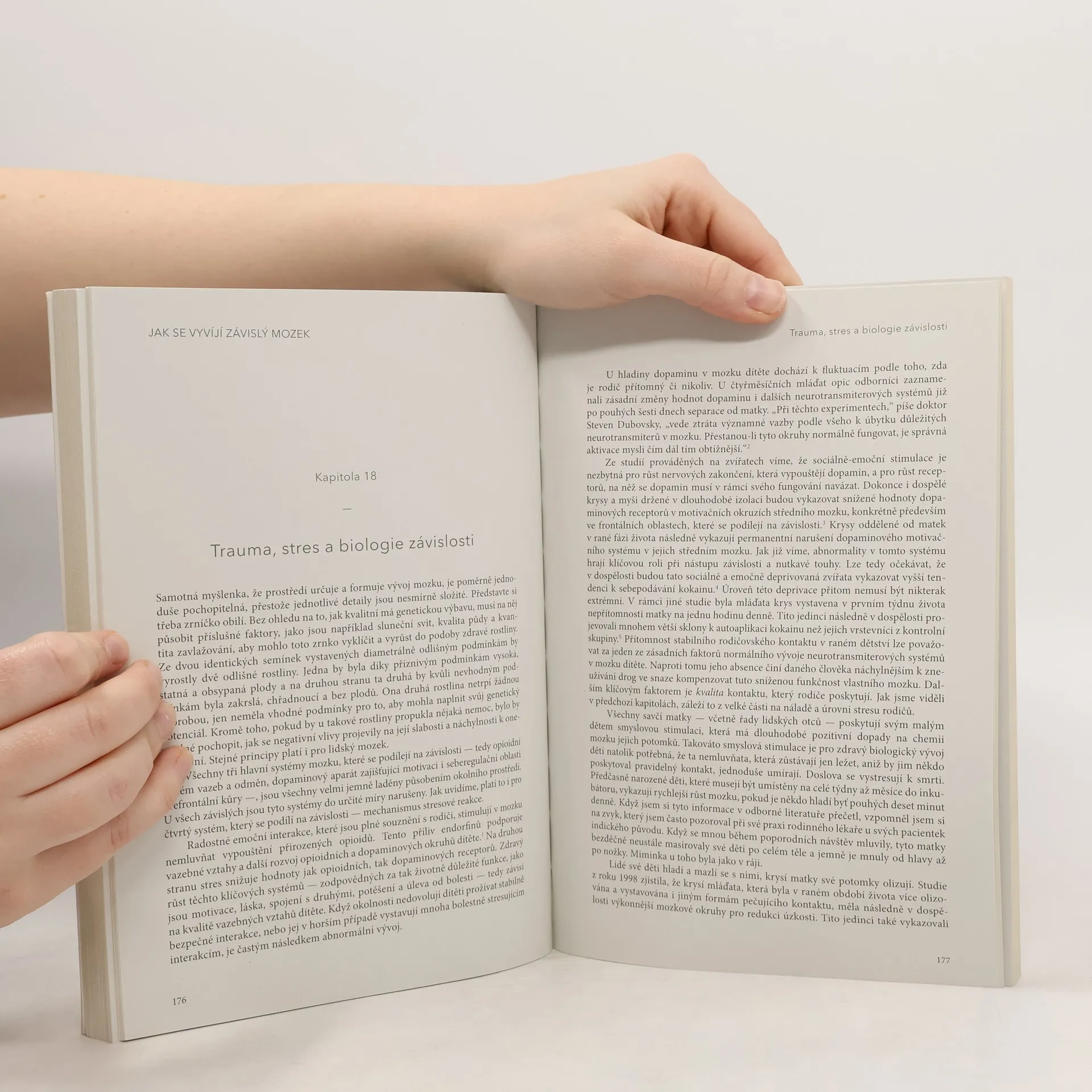 Toto je kniha o závislostech, tj. o něčem, co se týká každého z nás. Závislí totiž nejsme pouze na drogách, alkoholu, gamblingu nebo cigaretách.Závislost je cokoliv, po čem toužíme tak, že si nedokážeme pomoct, co nás dočasně utěší či uklidní, ale dlouhodobě nám či našemu okolí ublíží. Kniha přináší na tabuizované téma závislostí naprosto nový pohled. Vysvětluje jejich skutečné příčiny (traumata z nejranějšího dětství) a ukazuje cesty k jejich řešení (které se ovšem zásadně liší od těch, na které se spoléhá moderní západní společnost). Jak se v knize dozvíte závislost není důsledkem svobodné volby závislého, ale nemocí mozku.