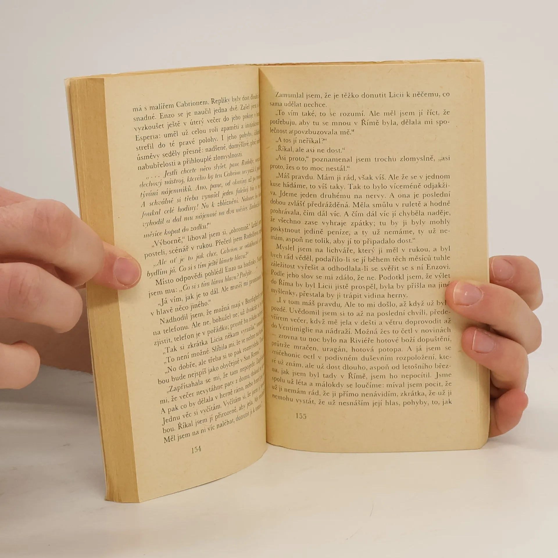 Román zavádí do italského filmového a televizního prostředí, do italských barů a heren. Vypráví téměř detektivní příběh o herci, který svou největší roli hraje v životě. Čtenář poznává podivné manželství a spolu s vypravěčem si klade otázku, kdo z obou manželů má větší podíl na smrti mladé dívky.