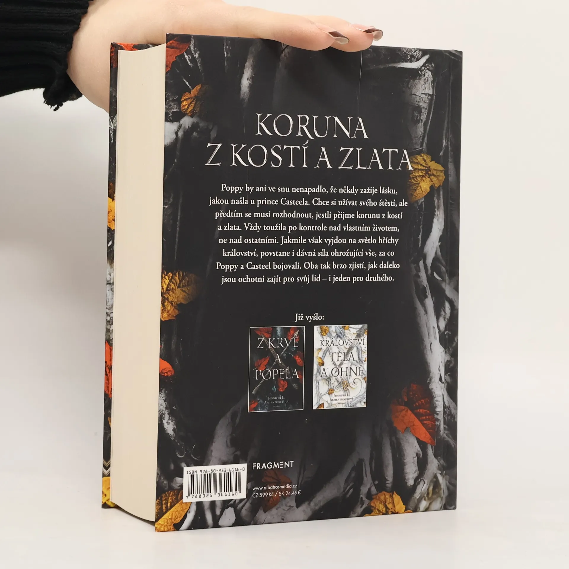 Pokloňte se své královně, nebo před ní vykrvácejte. Třetí díl bestsellerové fantasy série. Poppy by ani ve snu nenapadlo, že někdy zažije lásku, jakou našla u prince Casteela. Chce si užívat svého štěstí, ale předtím se musí rozhodnout, jestli příjme korunu z kostí a zlata. Vždy toužila po kontrole nad vlastním životem, ne nad ostatními. Jakmile však výjdou na světlo hříchy království, povstane i dávná síla ohrožující vše, za co Poppy a Casteel bojovali. A tak brzo zjistí, jak daleko jsou ochotni zajít pro svůj lid - i jeden pro druhého.