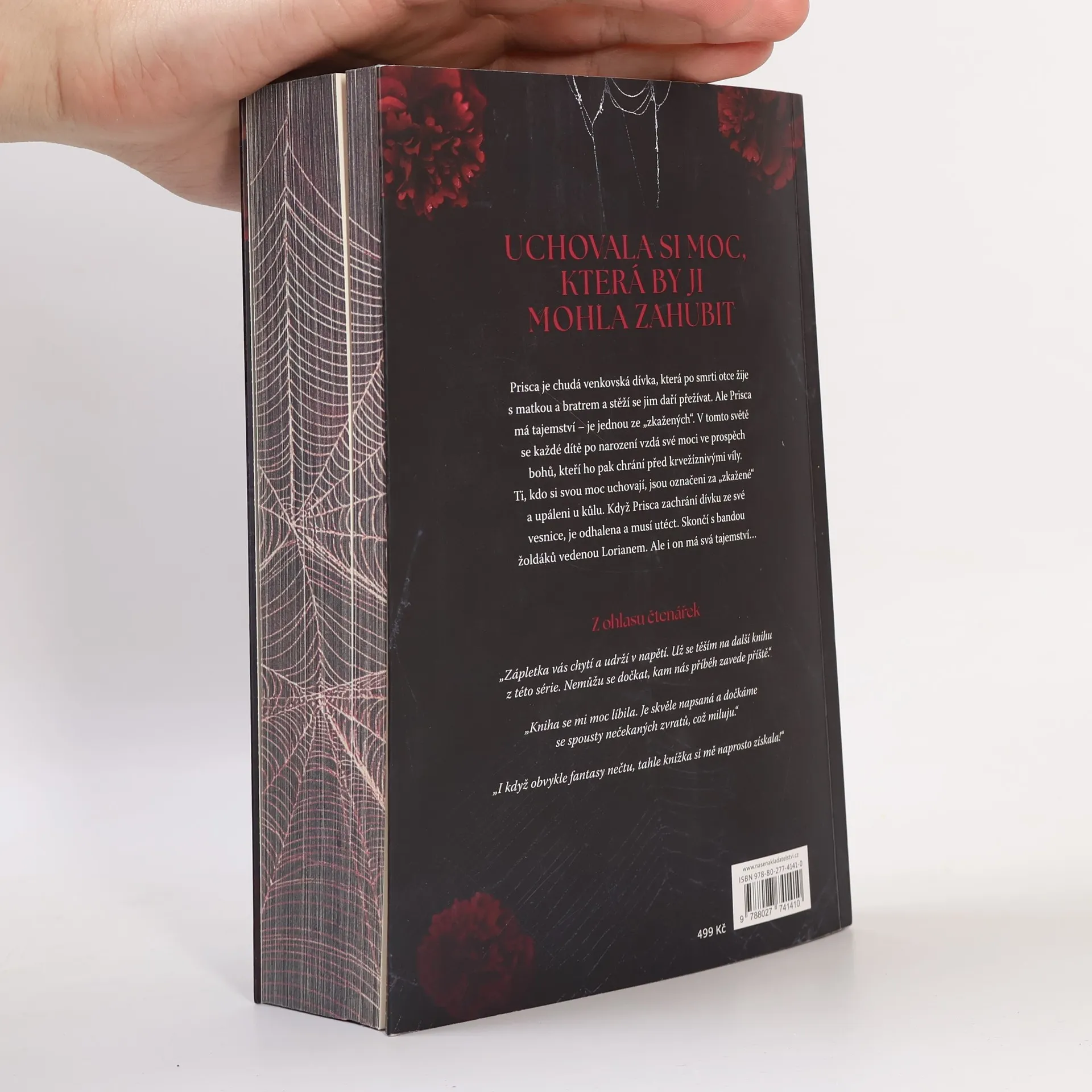 Po celá léta, když Prisca usínala, se jí zdálo o muži s podmanivýma zelenýma očima a krutým úsměvem. A skutečně se s ním setká, ovšem za jiných okolností, než by si přála. Nedlouho poté, co se lidé narodí, jim bohové seberou i tu trochu moci, s níž přišli na svět. Na oplátku je pak bohové chrání. Když se člověku podaří uchovat si svoji moc, je označený za zkaženého a je upálen. A právě to se přihodí Prisce. Její zakázaná moc je odhalena, a proto musí uprchnout ze své malé vesnice a pohodlného života. Aby přežila, musí uzavřít dohodu se žoldákem – Prisca pomůže jemu a jeho tajemným přátelům proniknout do města a oni ji naučí ovládat její vlastní tajemství a temnou moc, kterou vždy skrývala. Právě tato moc může být klíčem k Prisčině přežití. Jenže Prisca není jediná, kdo má tajemství. Žoldák skrývá svá vlastní. Tajemství, která ohrožují bezpečí všech, které Prisca miluje. Tajemství, která mohou rozvrátit nejen království, ale i celý svět.