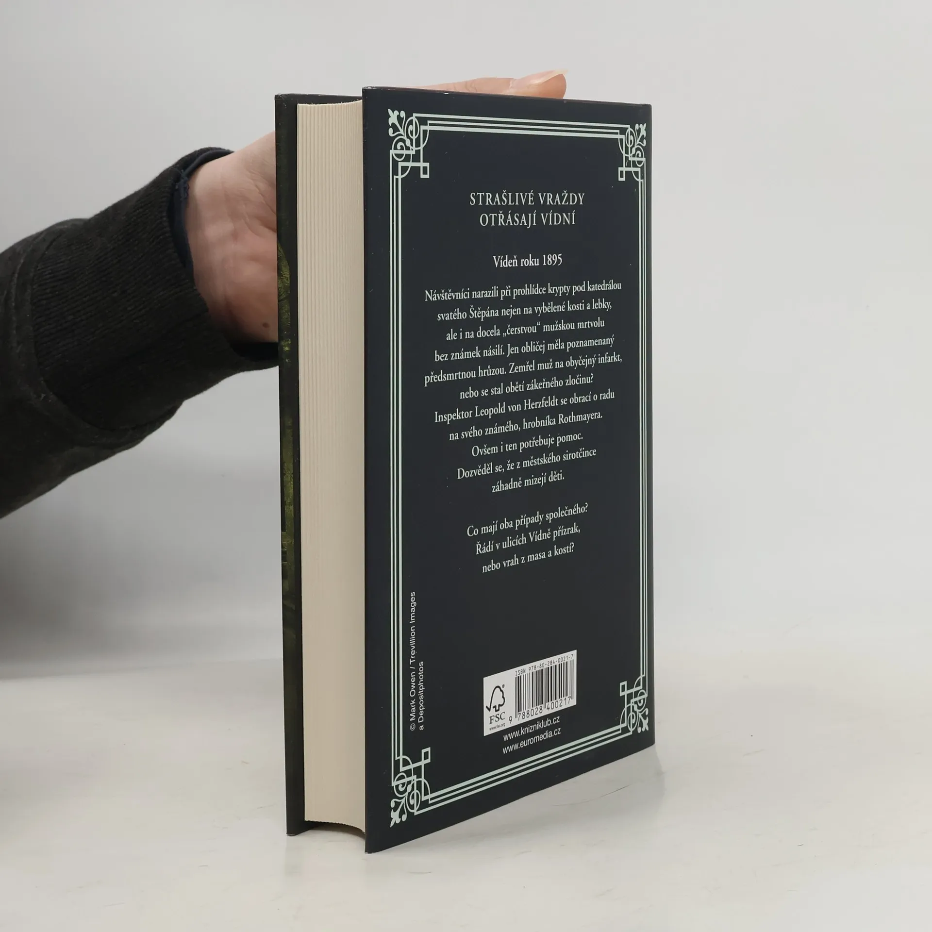 Další kriminální případ ze staré Vídně, v němž inspektor Leopold von Herzfeldt řeší případ tajemné smrti muže nalezeného v kryptě, a k tomu se navíc přidávají záhadná mizení dětí z místního sirotčince. Vídeň roku 1895: Inspektor Leopold von Herzfeldt řeší záhadnou smrt muže v kryptě pod katedrálou svatého Štěpána. Mrtvému nebyl zdánlivě zkřiven vlas na hlavě, jen obličej měl poznamenaný předsmrtnou hrůzou. Zemřel na obyčejný infarkt, nebo se stal obětí zákeřného zločinu? Inspektor se obrací o radu na svého známého hrobníka Rothmayera. Ovšem i ten potřebuje pomoc. Schovanka Anna ho upozornila na děti záhadně mizející z městského sirotčince. Nakladatelská anotace.