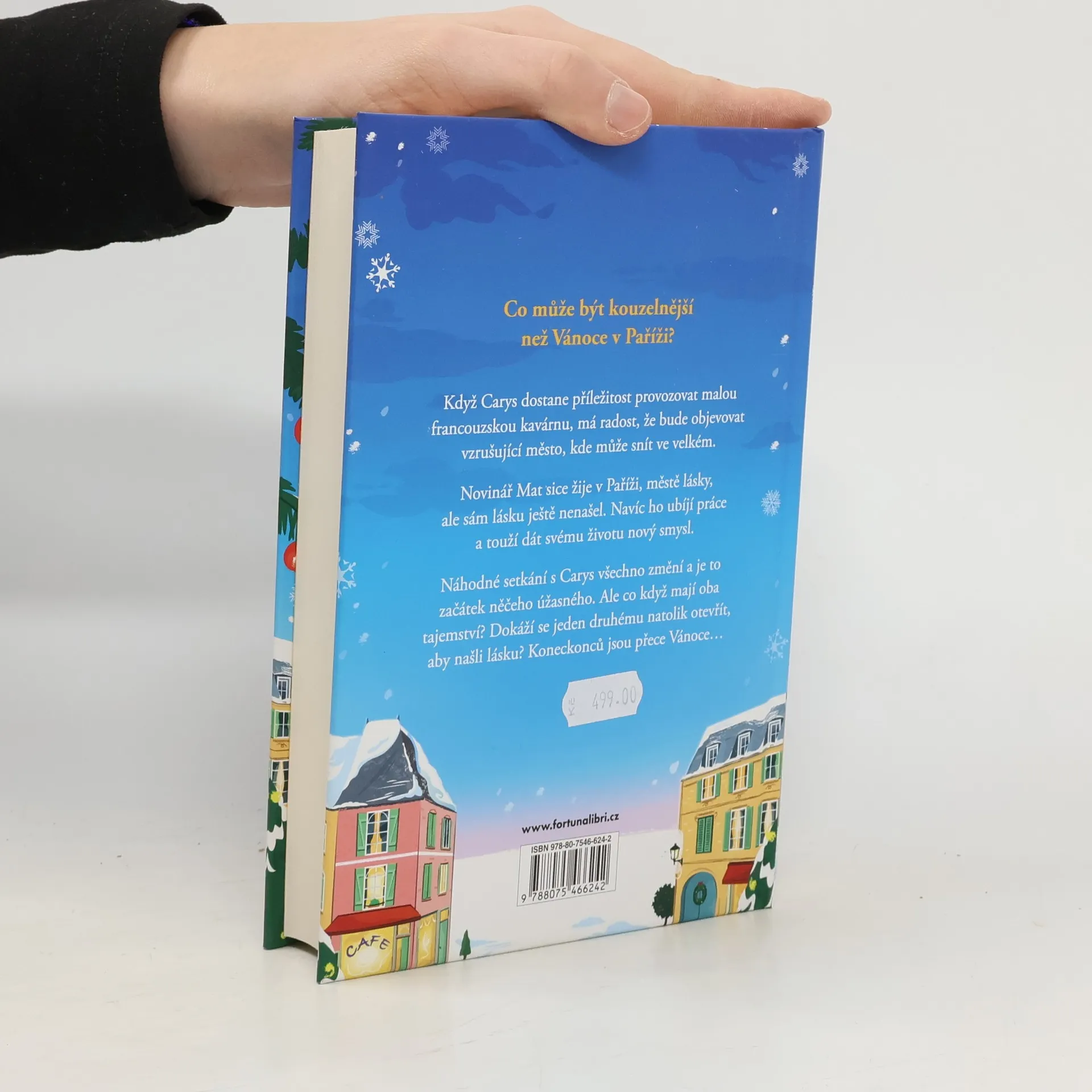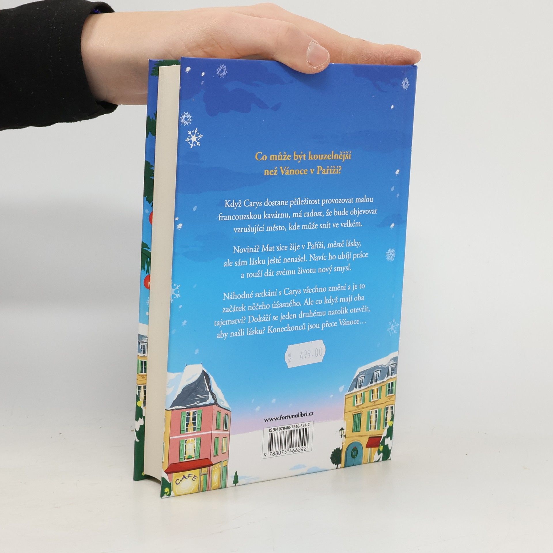 Romantický příběh, ve kterém Carys, dívka z malého anglického městečka, musí překonat sama sebe a najít odvahu k životu, jaký vždycky chtěla. A proč nezkusit romantickou Paříž? Co může být kouzelnější než Vánoce v Paříži? Když Carys dostane příležitost provozovat malou francouzskou kavárnu, má radost, že bude objevovat vzrušující město, kde může snít ve velkém. Novinář Mat sice žije v Paříži, městě lásky, ale sám lásku ještě nenašel. Navíc ho ubíjí práce a touží dát svému životu nový smysl. Náhodné setkání s Carys všechno změní a je to začátek něčeho úžasného. Ale co když mají oba tajemství? Dokáží se jeden druhému natolik otevřít, aby našli lásku? Koneckonců jsou přece Vánoce. Nakladatelská anotace.