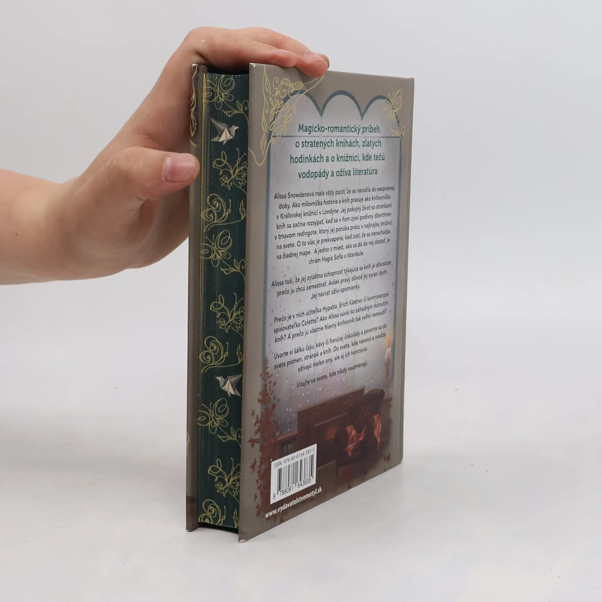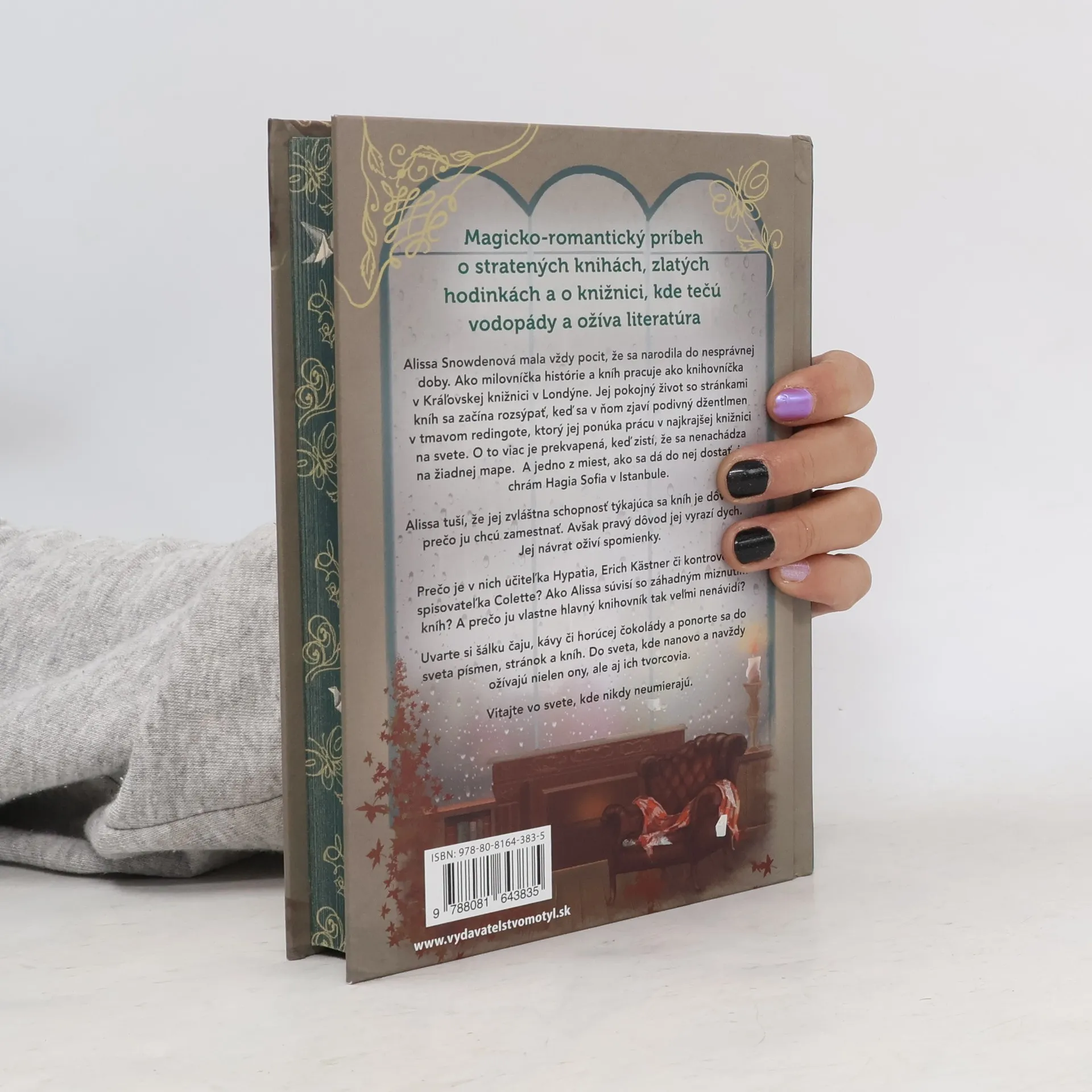 Alissa Snowdenová mala vždy pocit, že sa narodila do nesprávnej doby. Ako milovníčka histórie a kníh pracuje ako knihovníčka v Kráľovskej knižnici v Londýne. Jej pokojný život so stránkami kníh sa začína rozsýpať, keď sa v ňom zjaví podivný džentlmen v tmavom redingote, ktorý jej ponúka prácu v najkrajšej knižnici na svete. O to viac je prekvapená, keď zistí, že sa nenachádza na žiadnej mape. A jedno z miest, ako sa dá do nej dostať, je chrám Hagia Sofia v Istanbule. Alissa tuší, že jej zvláštna schopnosť týkajúca sa kníh je dôvodom, prečo ju chcú zamestnať. Avšak pravý dôvod jej vyrazí dych. Jej návrat oživí spomienky. Prečo je v nich učiteľka Hypatia, Erich Kästner či kontroverzná spisovateľ ka Colette? Ako Alissa súvisí so záhadným miznutím kníh? A prečo ju vlastne hlavný knihovník tak veľmi nenávidí? Uvarte si šálku čaju, kávy či horúcej čokolády a ponorte sa do sveta písmen, stránok a kníh. Do sveta, kde nanovo a navždy ožívajú nielen ony, ale aj ich tvorcovia. Vitajte vo svete, kde nikdy neumierajú.