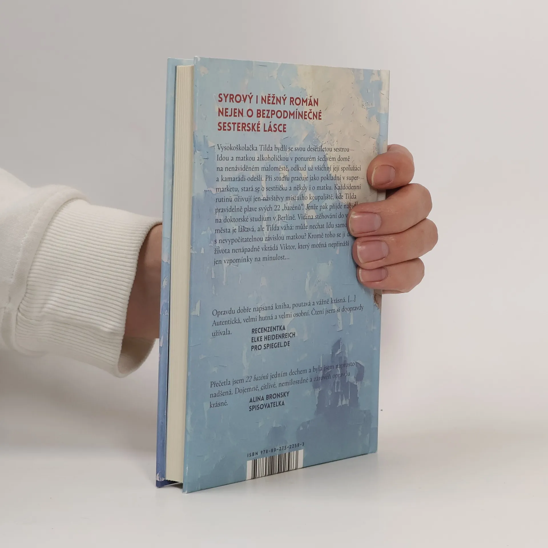 Syrový i něžný román nejen o bezpodmínečné sesterské lásce. Vysokoškolačka Tilda bydlí se svou desetiletou sestrou Idou a matkou alkoholičkou v ponurém šedivém domě na nenáviděném maloměstě, odkud už všichni její spolužáci a kamarádi odešli. Při studiu pracuje jako pokladní v supermarketu, stará se o sestřičku a někdy i o matku. Každodenní rutinu oživují jen návštěvy místního koupaliště, kde Tilda pravidelně plave svých 22 „bazénů“. Jenže pak přijde nabídka na doktorské studium v Berlíně. Tildu vidina stěhování do velkoměsta láká, ale zároveň váhá: může nechat Idu samotnou s nevypočitatelnou závislou matkou? Kromě toho se jí do života nenápadně vkrádá Viktor, který možná nepřináší jen vzpomínky na minulost…