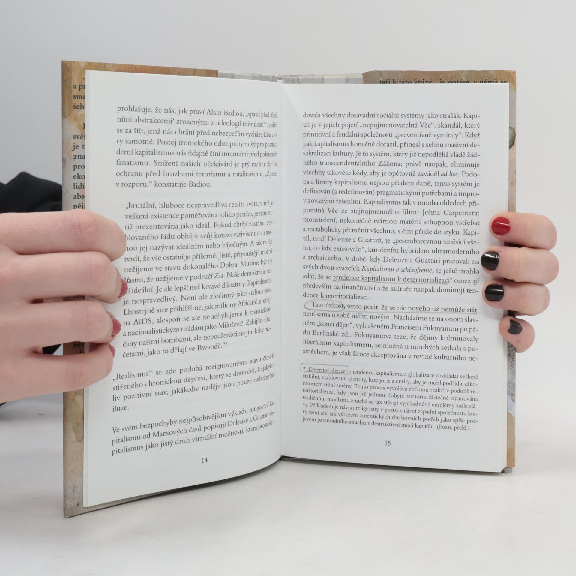 Dnes je snazší představit si konec světa než konec kapitalismu. Po roce 1989 se kapitalismus stal jediným realistickým politicko-ekonomickým systémem. Mladí lidé často nevnímají absenci alternativ jako problém, přestože jsou nejvíce paralyzováni současným světem. Prožívají neschopnost se soustředit, ztrátu dlouhodobé perspektivy a konformismus, což jsou důsledky ideologie, která se tváří neideologicky a chrání nás před „nebezpečnými“ ideologiemi a utopiemi. Mark Fisher, anglický filozof a kulturní kritik, analyzuje symptomy našeho postmoderního marasmu. Kapitalistický realismus, systém, v němž se jakákoli změna zdá nemožná, připouští pouze sebereprodukci a utopii neustálého růstu. Co je sociálně a biologicky nemožné, se zde jeví jako nutné a přirozené. Obraz společnosti, v níž žijeme, je falešný, neboť z našeho jazyka byla vytlačena slova jako sociální spravedlnost, třídní konflikty a alternativa. Knihy jako tato vrací do našeho jazyka potřebná slova, abychom mohli vzdorovat novému kapitalismu, který z každé alternativy dělá pouhý fragment sebe sama.