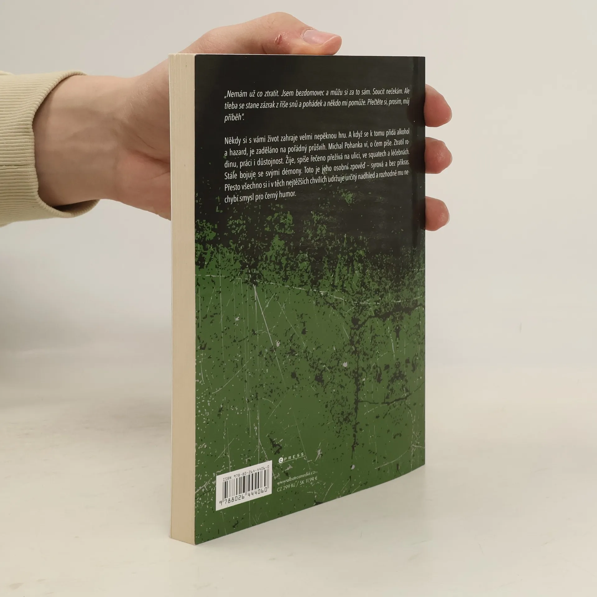 Jak se žije, když ztratíte úplně všechno? Skutečný příběh bezdomovce Michala Pohanky.Někdy si s vámi život zahraje velmi nepěknou hru. A když se k tomu přidá alkohol a hazard, je zaděláno na pořádný průšvih. Michal Pohanka ví, o čem píše. Ztratil rodinu, práci i důstojnost. Žije, spíše řečeno přežívá na ulici, ve squatech a léčebnách. Stále bojuje se svými démony. Toto je jeho příběh – syrový a bez příkras. Přesto všechno si i v těch nejtěžších chvílích udržuje určitý nadhled a rozhodně mu nechybí smysl pro humor.