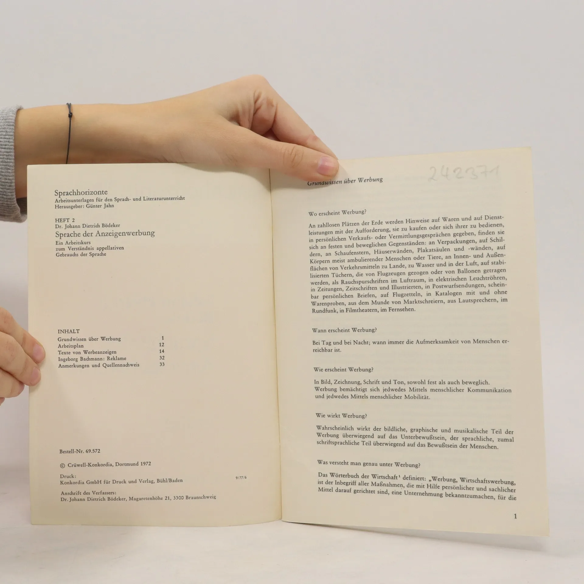 Sprache der Anzeigenwerbung, Johann Dietrich Bödeker