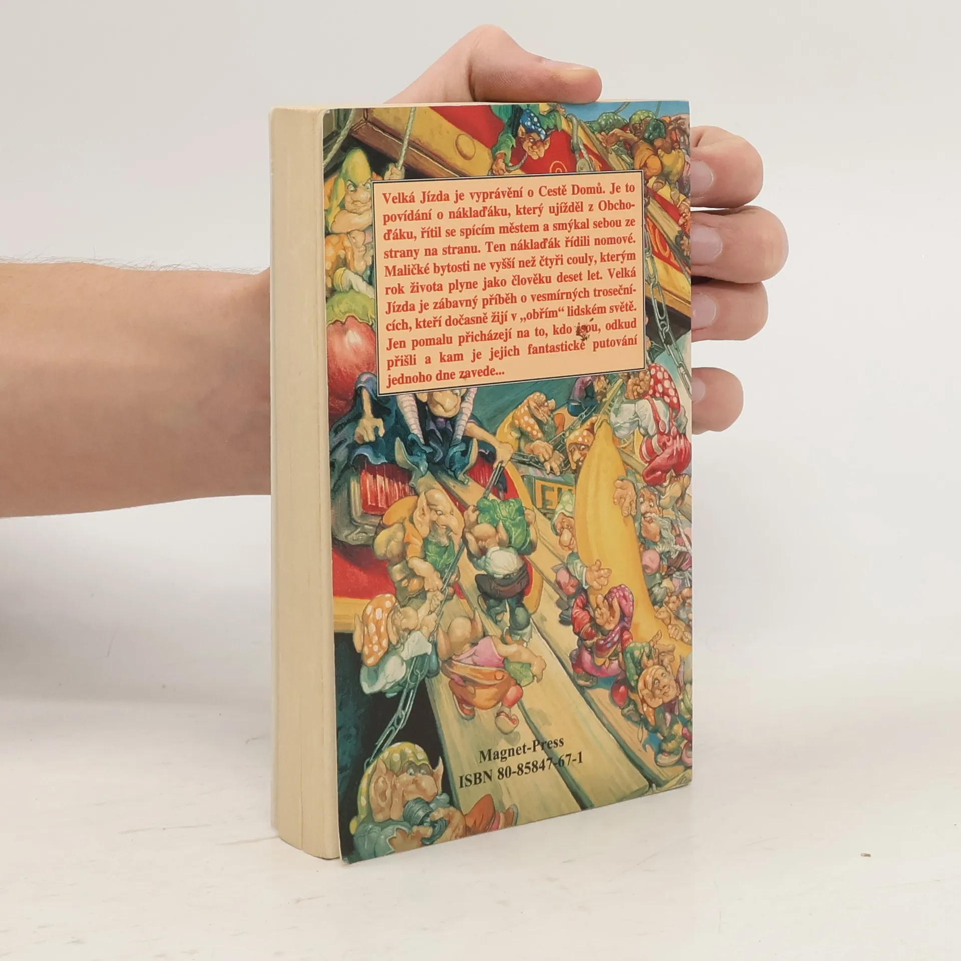 Velká Jízda je vyprávění o Cestě Domů. Je to povídání o náklaďáku, který ujížděl z Obchoďáku, řítil se spícím městem a smýkal sebou ze strany na stranu. Ten náklaďák řídili nomové. Maličké bytosti ne vyšší než čtyři couly, kterým rok života plyne jako člověku deset let. Velká Jízda je zábavný příběch o vesmírných trosečnících, kteří dočasně žijí v "obřím" lidském světě. Jen pomalu přicházejí na to, kdo jsou, odkud přišli a kam je jejich fantastické putování jednoho dne zavede...... celý text