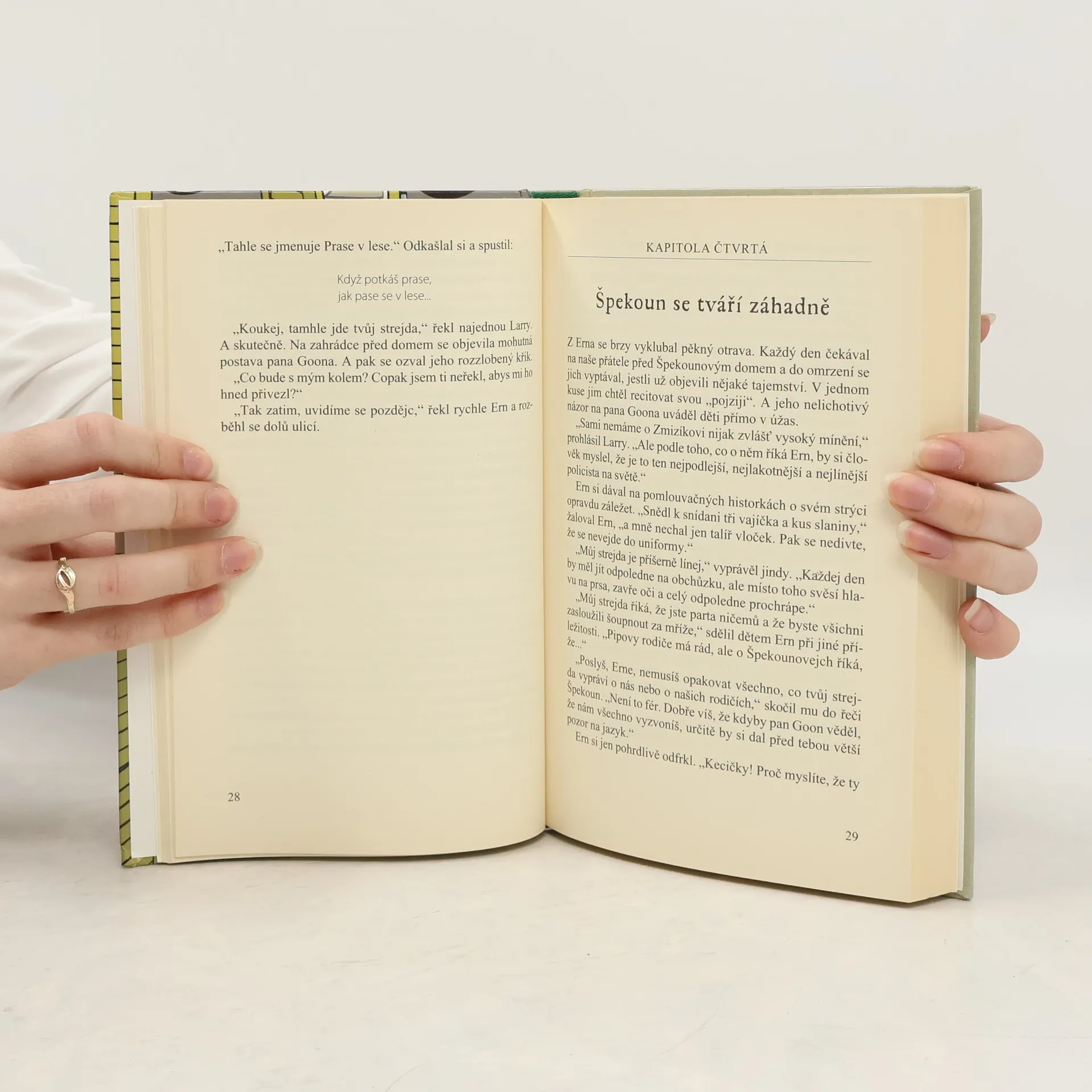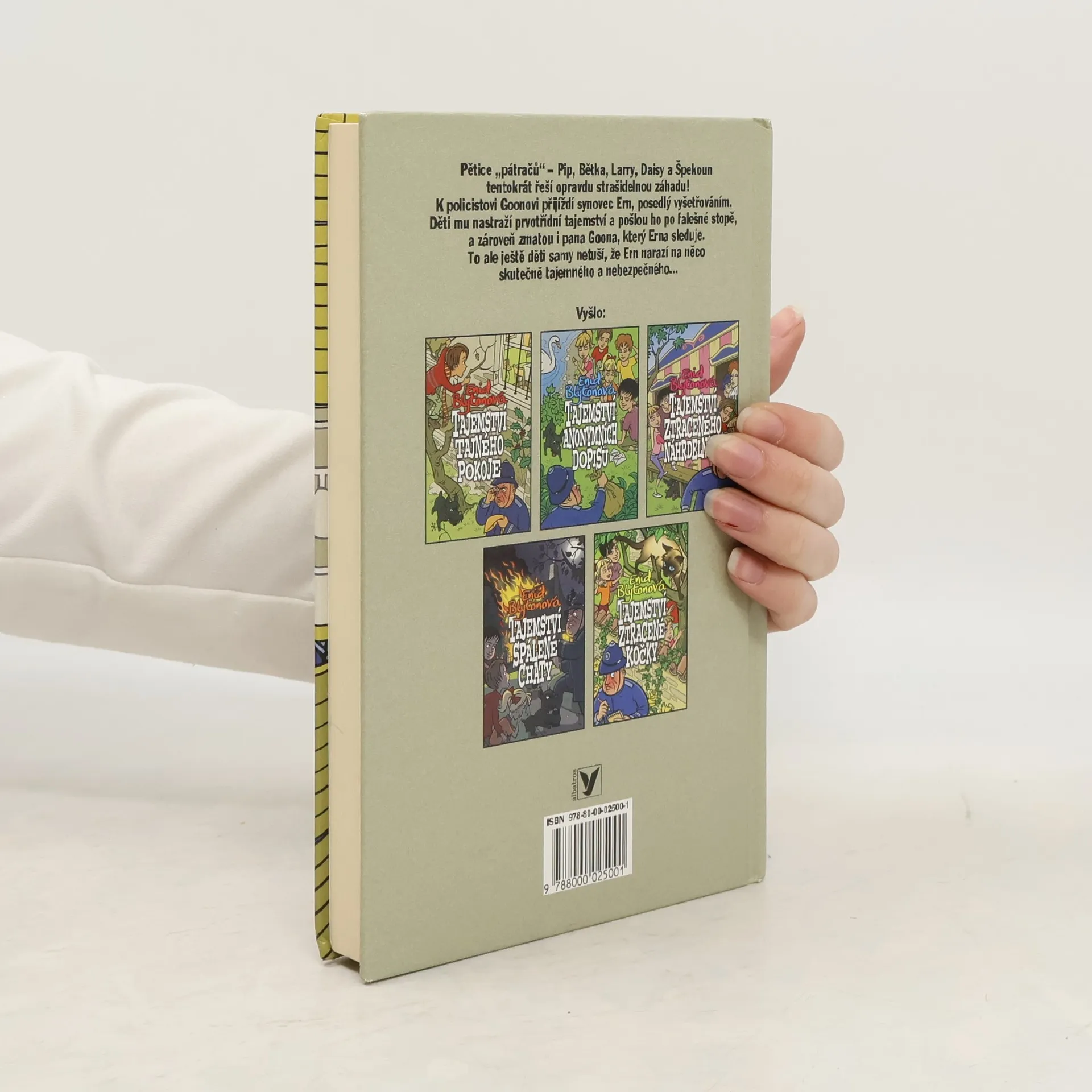 V dalším volném pokračování dětských detektivek se opět setkáváme s pěticí malých „pátračů“. Pip, Bětka, Larry , Daisy a Špekoun se tentokrát pustí do řešení opravdu strašidelné záhady! Do Peterswoodu přijíždí synovec místního policisty, pana Goona, Ern. Je posedlý záhadami a naši přátelé pro něj vymyslí prvotřídní tajemství a pošlou ho po falešné stopě. To ale ještě sami netuší, že Ern narazí na něco skutečně tajemného… Děti se dostanou do mnoha choulostivých situací a případ opuštěného domu nakonec – jako ve správné detektivce – překvapivě vyřeší.
