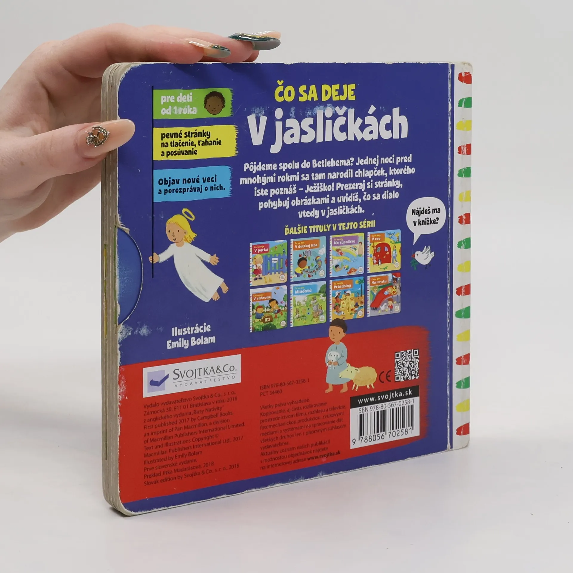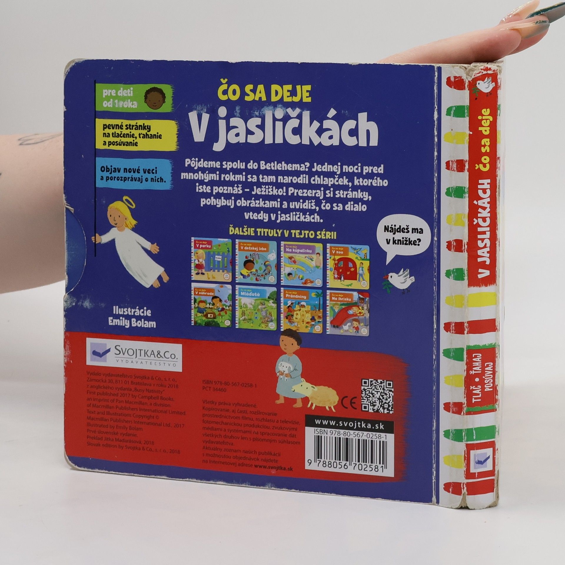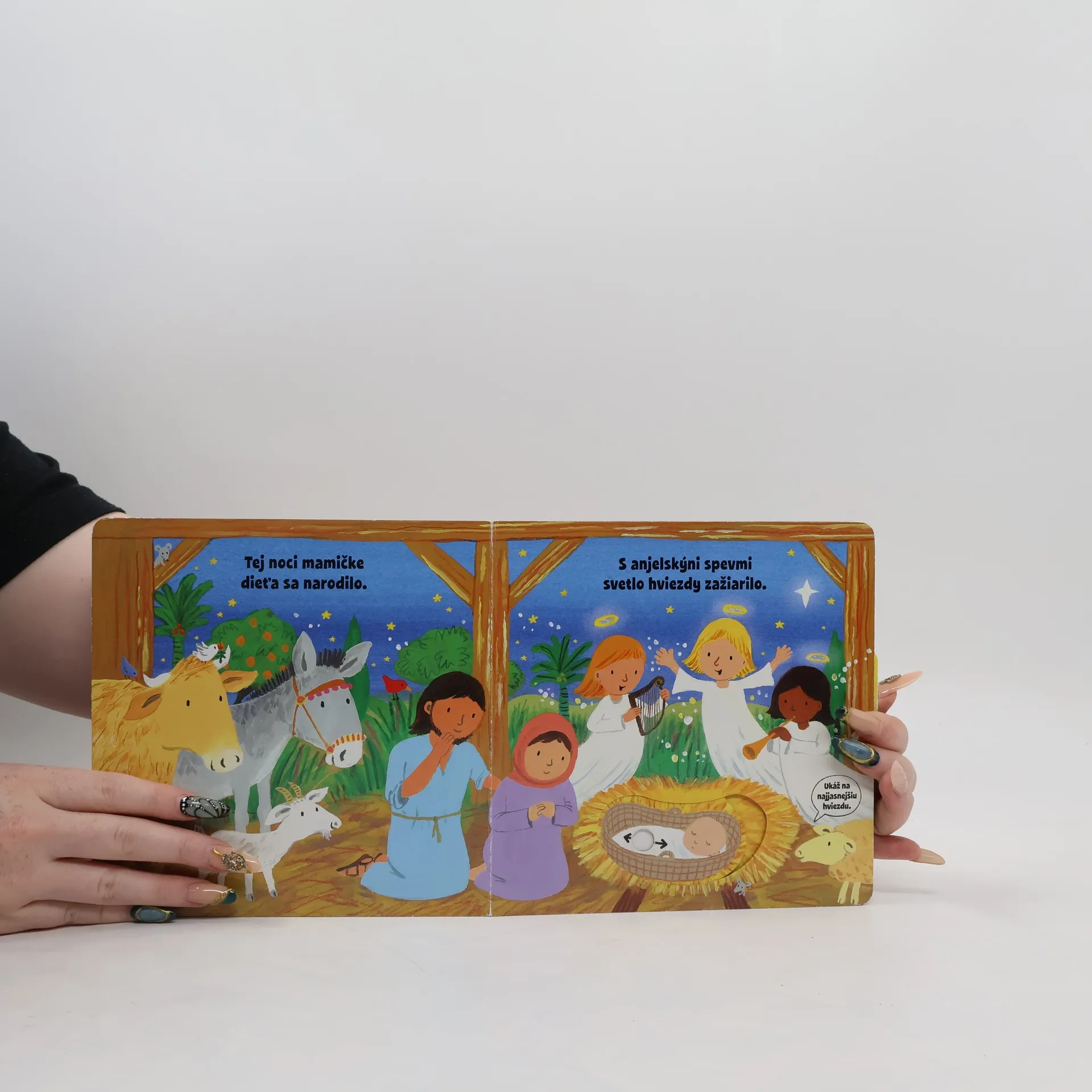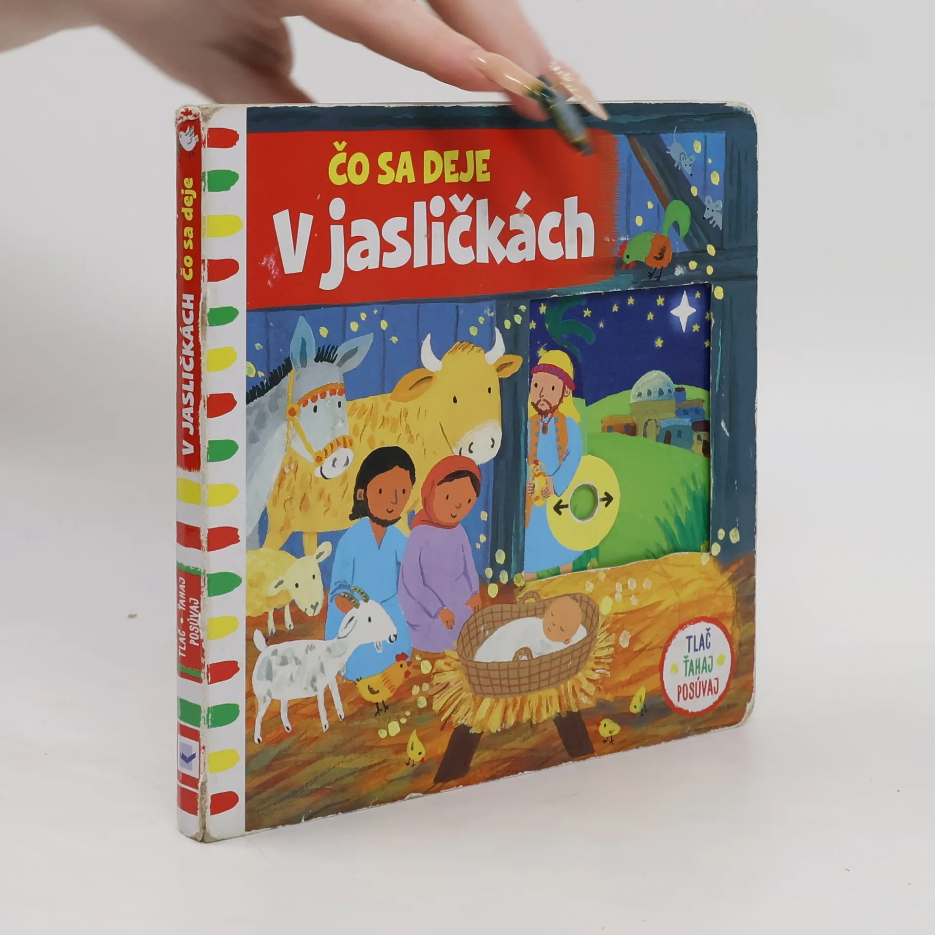 Leporelo je určené pre deti od jedného roka. Má pevné stránky s posuvnými a otočnými prvkami. Zisti, čo sa deje v jasličkách, a precvič si jemnú motoriku.