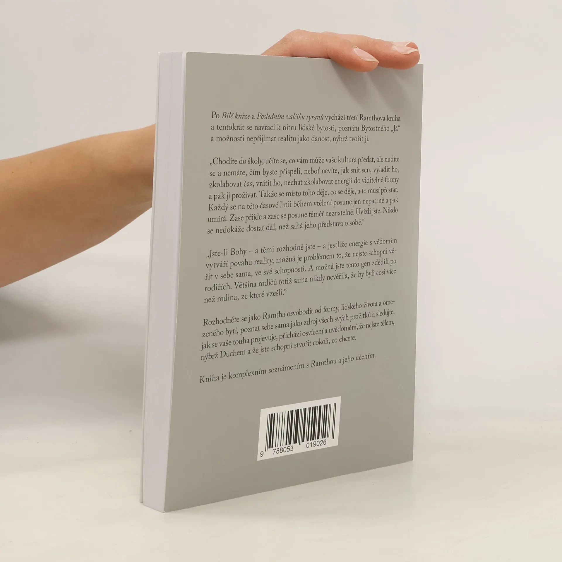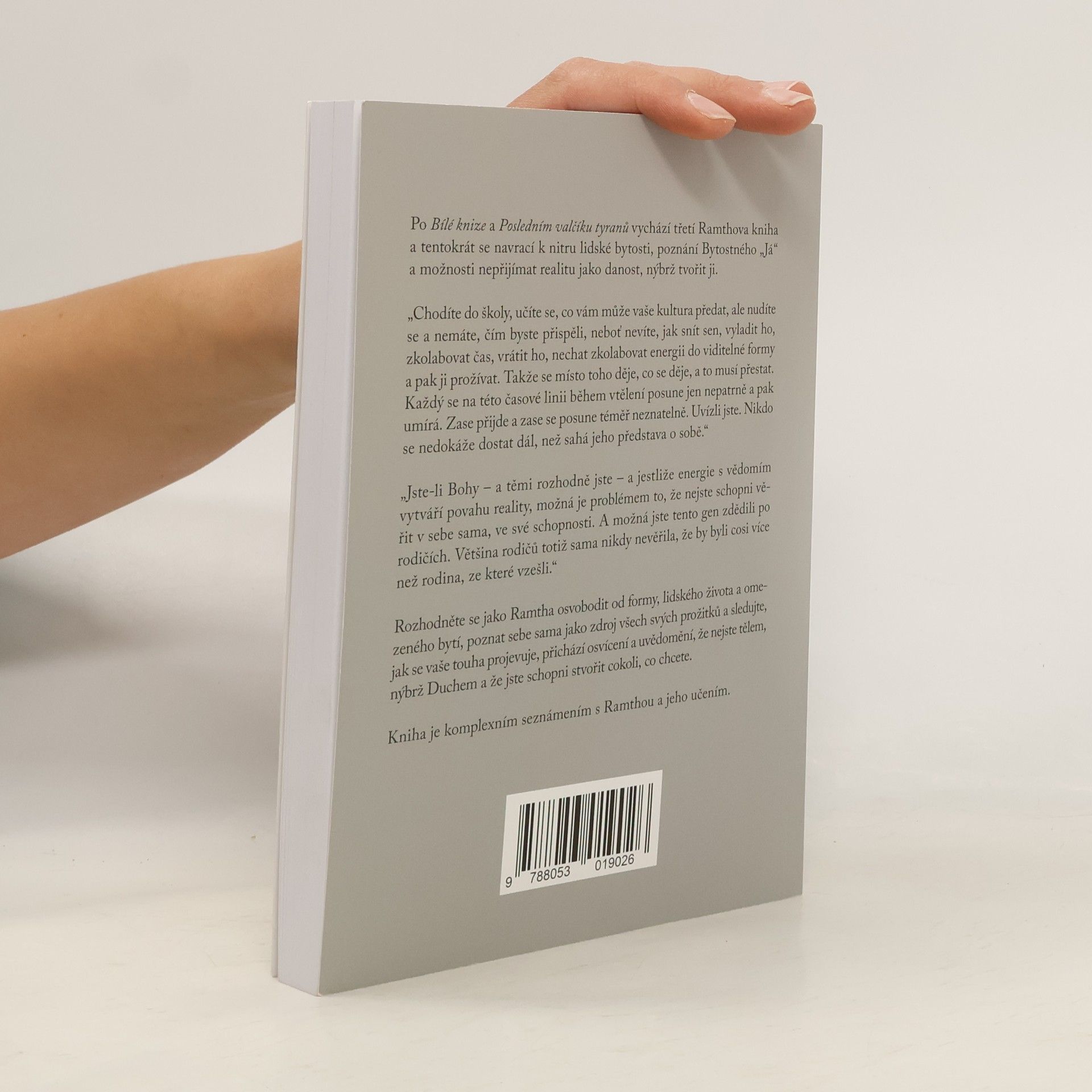 Po Bílé knize a Posledním valčíku tyranů vychází třetí Ramthova kniha a tentokrát se navrací k nitru lidské bytosti, poznání Bytostného „Já“ a možnosti nepřijímat realitu jako danost, nýbrž tvořit ji. „Chodíte do školy, učíte se, co vám může vaše kultura předat, ale nudíte sea nemáte, čím byste přispěli, neboť nevíte, jak snít sen, vyladit ho, zkolabovat čas, vrátit ho, nechat zkolabovat energii do viditelné formy a pak ji prožívat. Takže se místo toho děje, co se děje, a to musí přestat. Každý se na této časové linii během vtělení posune jen nepatrně a pak umírá. Zase přijde a zase se posune téměř neznatelně. Uvízli jste. Nikdo se nedokáže dostat dál, než sahá jeho představa o sobě.“ „Jste-li Bohy – a těmi rozhodně jste – a jestliže energie s vědomím vytváří povahu reality, možná je problémem to, že nejste schopni věřit v sebe sama, ve své schopnosti. A možná jste tento gen zdědili po rodičích. Většina rodičů totiž sama nikdy nevěřila, že by byli cosi více než rodina, ze které vzešli.“ Rozhodněte se jako Ramtha osvobodit od formy, lidského života a omezeného bytí, poznat sebe sama jako zdroj všech svých prožitků a sledujte, jak se vaše touha projevuje, přichází osvícení a uvědomění, že nejste tělem, nýbrž Duchem a že jste schopni stvořit cokoli, co chcete. Kniha je komplexním seznámením s Ramthou a jeho učením.
