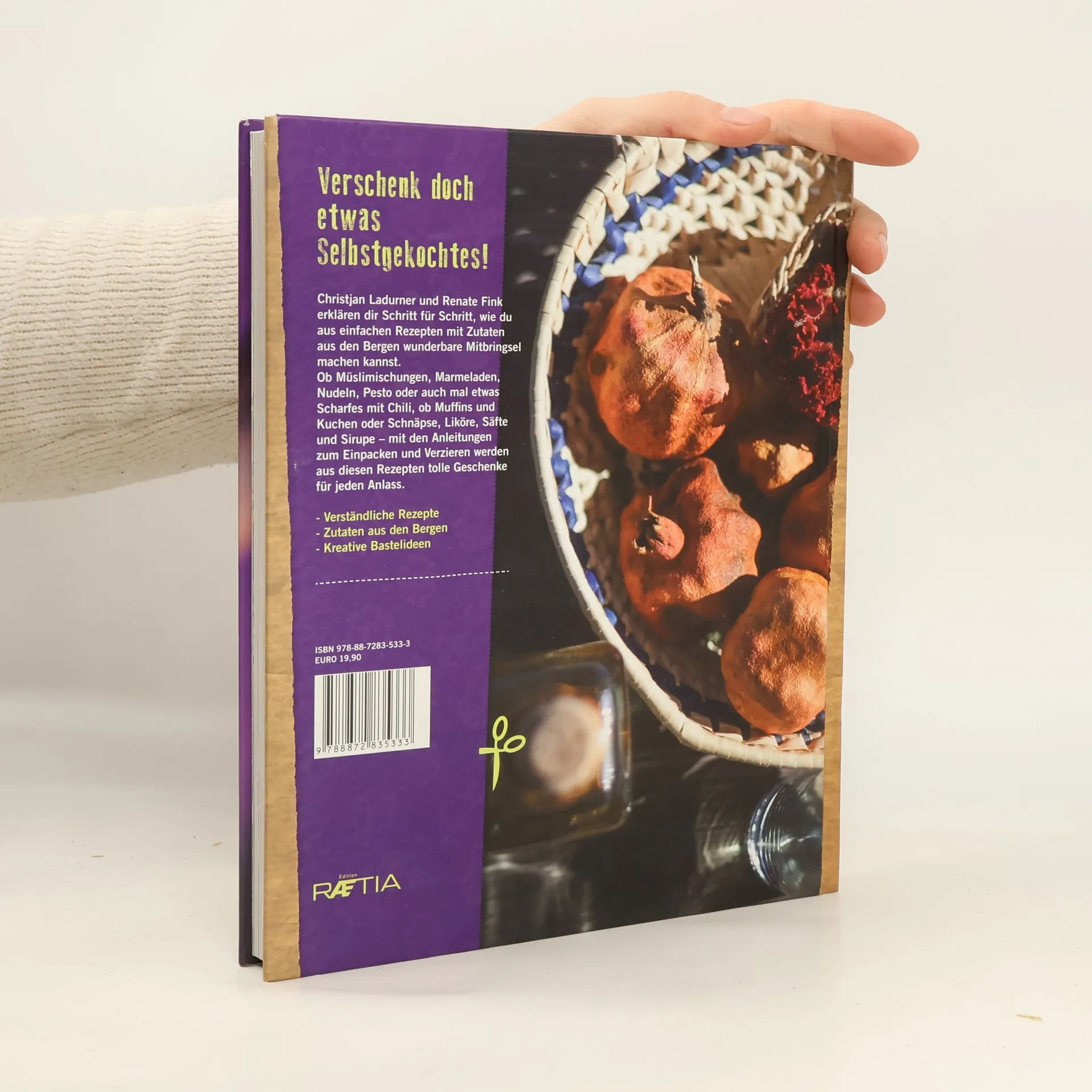 Verschenk doch etwas Selbstgekochtes! Christjan Ladurner und Renate Fink erklären dir Schritt für Schritt, wie du aus einfachen Rezepten mit Zutaten aus den Bergen wunderbare Mitbringsel machen kannst. Ob Müslimischungen, Marmeladen, Nudeln, Pesto oder auch mal etwas Scharfes mit Chili, ob Muffins und Kuchen oder Schnäpse, Liköre, Säfte und Sirupe – mit den Anleitungen zum Einpacken und Verzieren werden aus diesen Rezepten tolle Geschenke für jeden Anlass. - Verständliche Rezepte - Zutaten aus den Bergen - Kreative Bastelideen