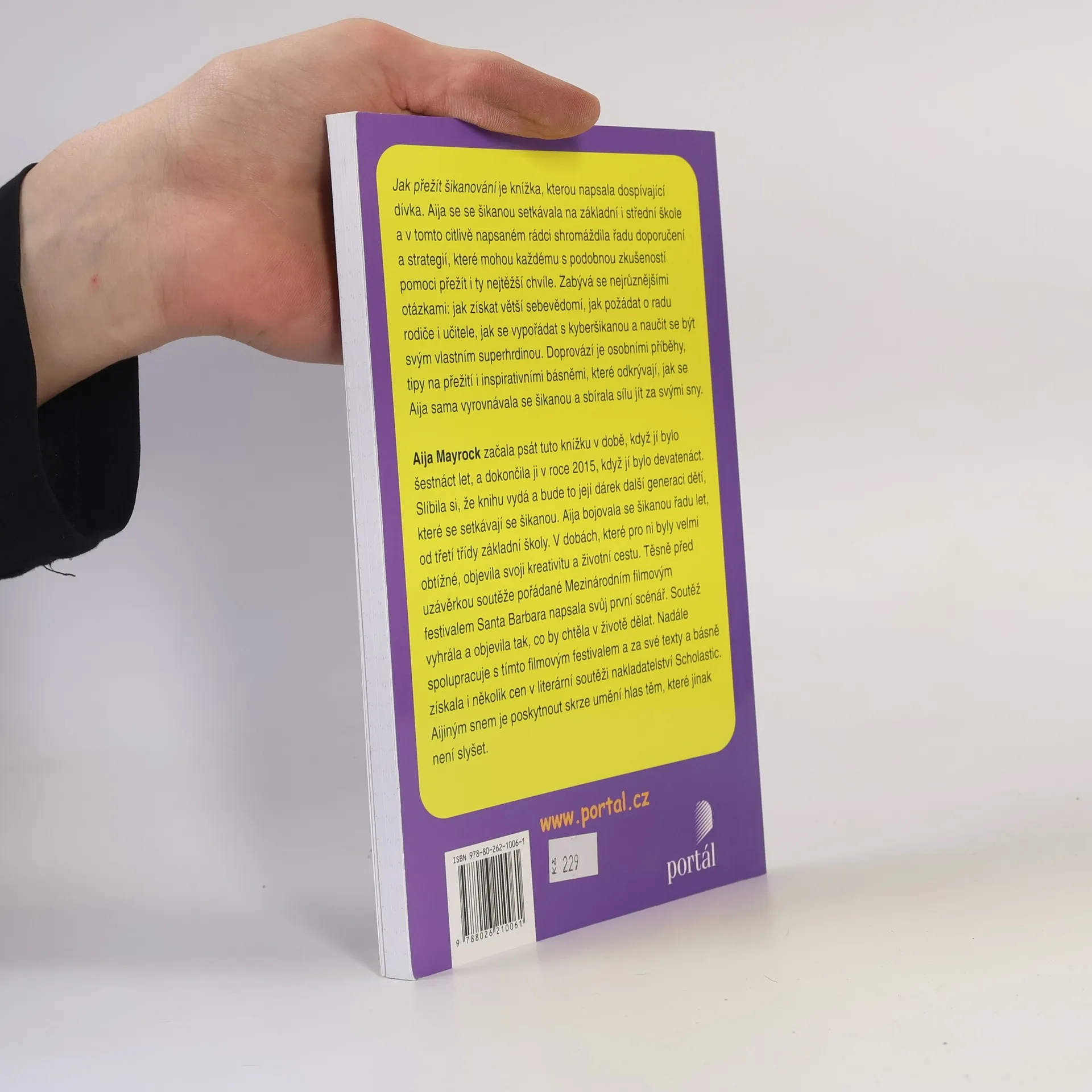 Šikana. Téma, které se týká každé školy a dokonce i každé školní třídy. Děti, které někdo šikanoval, se cítí podobně. Nechápou, proč se staly obětí šikanování, nerozumí tomu, co se děje. A někdy si začnou myslet, že opravdu nestojí za nic, že jsou opravdu tak děsné, jak jim říkají ti, kteří je šikanují. Tuto knihu napsala dívka, kterou ve škole také šikanovali. Dobře ví, co se člověku, kterého někdo trápí, honí v hlavě, a také si dobře pamatuje, co jí pomohlo. Přála by si, aby její kniha pomohla dětem, které spolužáci šikanují, osušit slzy a začít se znovu smát. Kniha osloví nejen děti, ale také jejich rodiče a vychovatele. Aija Mayrock je spisovatelka, herečka a aktivistka. Se šikanou má osobní zkušenost a svou knihou chce pomoci dětem, které jsou v podobné situaci.