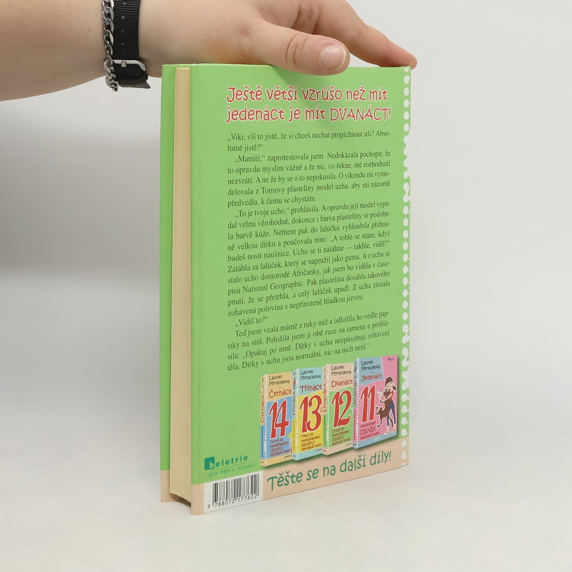 Ještě větší vzrůšo než mít jedenáct je mít DVANÁCT! Viki, veselá, milá a vtipná hrdinka úspěšné knihy JEDENÁCT, je zase o rok starší a dospělejší. Ovšem její někdy spíše úsměvné, jindy vážnější trable a nedorozumění s rodiči, sourozenci, ale hlavně kamarádkami současnými i bývalými a těmi, s nimiž se nikdy přátelit nehodlá, jí život rozhodně neulehčují. Viki zjišťuje, jak hořce chutná zrada ze strany blízkého člověka, ale zakouší i stud nad svým chováním, když i ona dokáže ublížit. A navíc si musí zvyknout na spoustu novinek, jako jsou například lesky na rty, noví spolužáci, letní tábory, ženské prádlo a hlavně KLUCI!