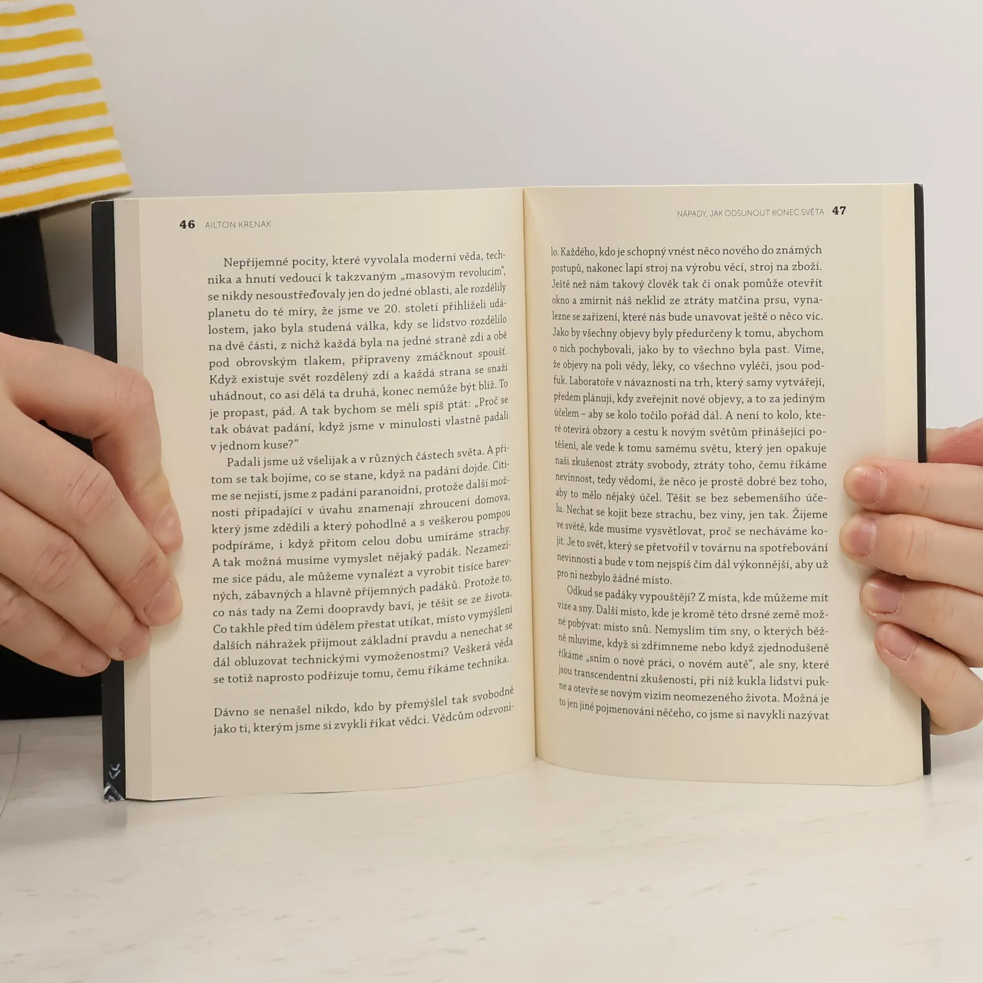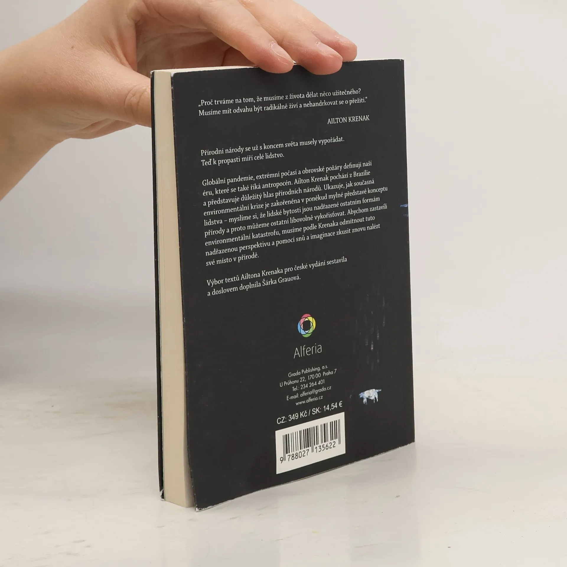 „Proč trváme na tom, že musíme z života dělat něco užitečného? Musíme mít odvahu být radikálně živí a nehandrkovat se o přežití.“Přírodní národy se už s koncem světa musely vypořádat. Teď k propasti míří celé lidstvo.Globální pandemie, extrémní počasí a obrovské požáry definují naší éru, které se také říká antropocén. Ailton Krenak pochází z Brazílie, kde je brán za důležitý hlas přírodních národů. Ukazuje, jak současná environmentální krize je zakořeněna v poněkud mylné představě konceptu lidstva – myslíme si, že lidské bytosti jsou nadřazené ostatním formám přírody a proto je můžeme libovolně vykořisťovat. Abychom zastavili environmentální katastrofu, musíme podle Krenaka odmítnout důsledky této nadřazené perspektivy a přijmout novou formu snění, která nám umožní znovu nalézt své místo v přírodě. V této knize ukazuje jak na to.Pro české vydání textů Ailtona Krenaka sestavila Šárka Grauová výbor z několik knih vydaných v portugalštině.
