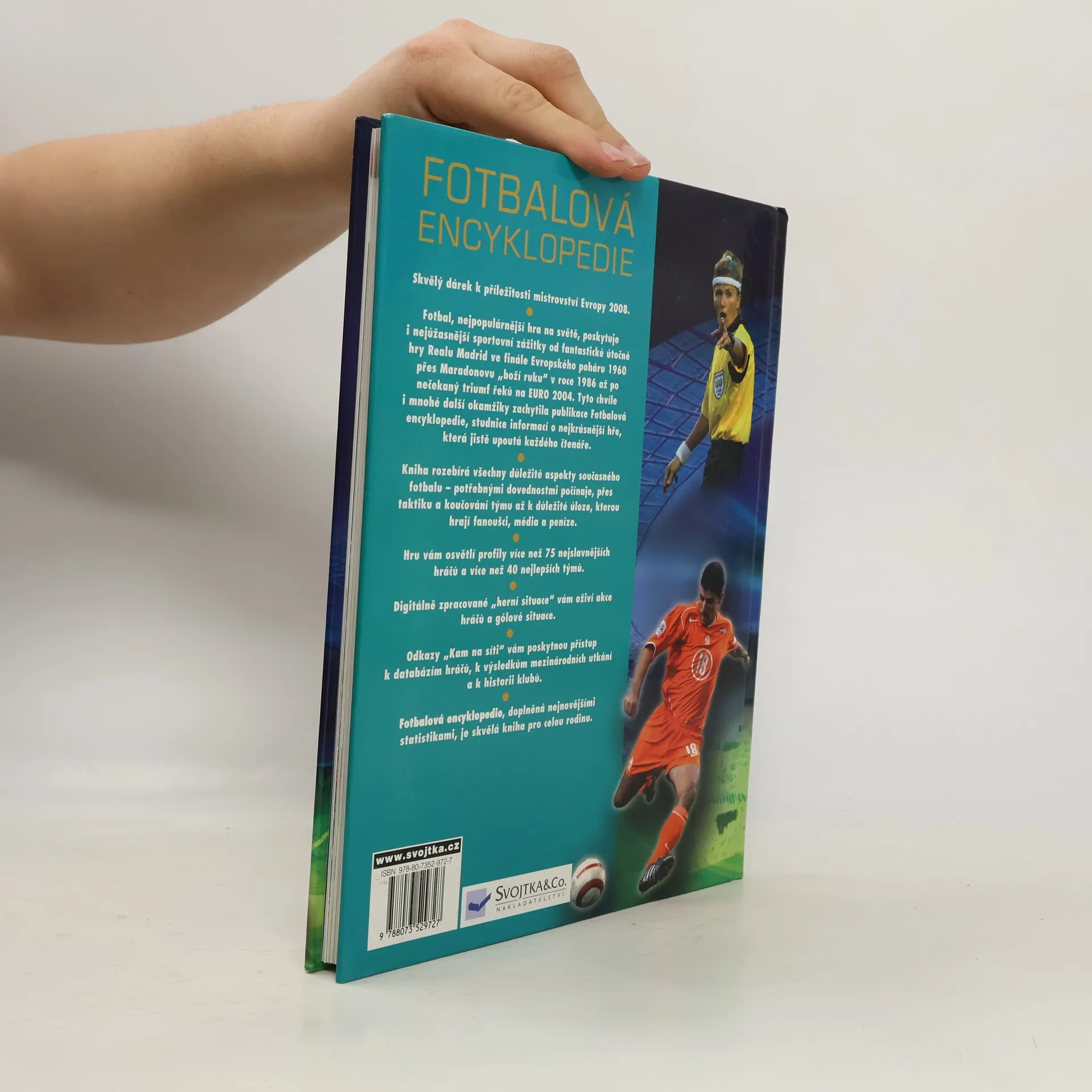 Kniha rozebírá všechny aspekty současného fotbalu – potřebnými dovednostmi počínaje, přes taktiku a koučování týmu až po důležitou úlohu, kterou hrají fanoušci, média a peníze. Naleznete zde také profily slavných hráčů a týmů. Digitální zpracování herních situací vám oživí akce hráčů a gólové situace. Tato publikace, která zachytila nejdůležitější chvíle a okamžiky v historii fotbalu, se jistě stane studnicí informací, jež upoutá každého fotbalového fanouška. A nejen to! Fotbalová encyklopedie, doplněná nejnovějšími statistikami, je skvělá kniha pro celou rodinu!