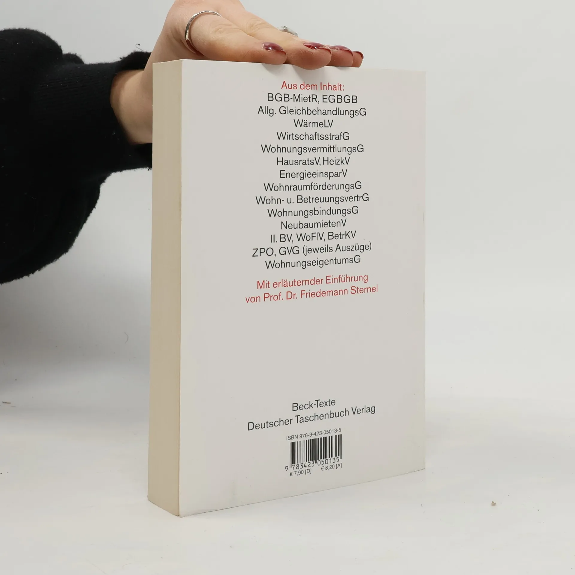 BGB-Mietrecht, EGBGB, AGG, HeizkV, EnEV, WoFlV, BetrKV, WoBindG, WoFG, WirtschaftsstrafG, WEG Textausgabe mit ausführlichem Sachregister und einer Einführung von Vorsitzendem Richter a. D. Prof. Dr. Friedemann Sternel Inhalt: BGB-MietR, EGBGB, Allg. GleichbehandlungsG, WirtschaftsstrafG, WohnungsvermittlungsG, HeizkV, EnergieeinsparungsV, WärmelieferVO, WohnraumförderungsG, WohnungsbindungsG, NeubaumietenV, II. BV/WoFlV, BetrKV, ZPO, GVG (jeweils Auszüge), WohnungseigentumsG Zur 49. Auflage (Rechtsstand: 15. Januar 2019): Neu in das Werk eingearbeitet wurden insbesondere die dem Gesetz zur Ergänzung der Regelungen über die zulässige Miethöhe bei Mietbeginn und zur Anpassung der Regelungen über die Modernisierung der Mietsache (Mietrechtsanpassungsgesetz – MietAnpG) vom Dezember 2018 entstammenden Änderungen des BGB, des EGBG sowie des Wirtschaftsstrafgesetzes, darunter die neuen §§ 559c und 559d BGB zu vereinfachten Verfahren und Pflichtverletzung bei Ankündigung oder Durchführung einer baulichen Veränderung.