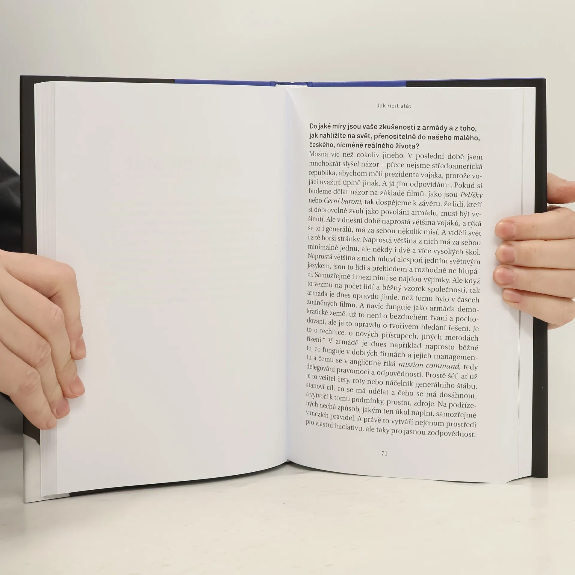 Syrový a upřímný rozhovor Jolany Voldánové s generálem Petrem Pavlem. Zkušená moderátorka se nevyhýbá žádným tématům – dětství, společenské názory, členství v KSČ, zkušenosti z NATO či důvody, proč se generál Petr Pavel rozhodl kandidovat na prezidentský post. „…. může to vypadat sebenaivněji nebo sebebeznadějněji, ale prostě chci zkoušet změnit blbou náladu v náladu dobrou. A myslím si, že to jde a že tomu může hodně pomoct právě to, že se to nejprve odšpuntuje na vršku. Protože když lidi vidí, co se teď v této zemi a v politice děje, tak musejí být opravdu znechucení. Jestli se na to dívá velká část lidí jako já, když vidí, co politici občas předvádějí, jak beztrestně to mnohým z nich prochází, jak se nám často smějí do tváře za něco, za co bychom my všichni ostatní byli potrestaní, tak to samozřejmě nemůže budit velký optimismus. Když to ale bude jinak a lidi alespoň začnou mít pocit, že pravidla platí pro všechny a že je tady možnost přijít s dobrým nápadem a nebýt za to hned po zásluze potrestán, a když pak takový nápad dostane zelenou, tak se to začne trošku hýbat dopředu. A myslím, že pak by se pomalu mohla měnit i ta blbá nálada, kterou tu dnes už zase bohužel máme.“