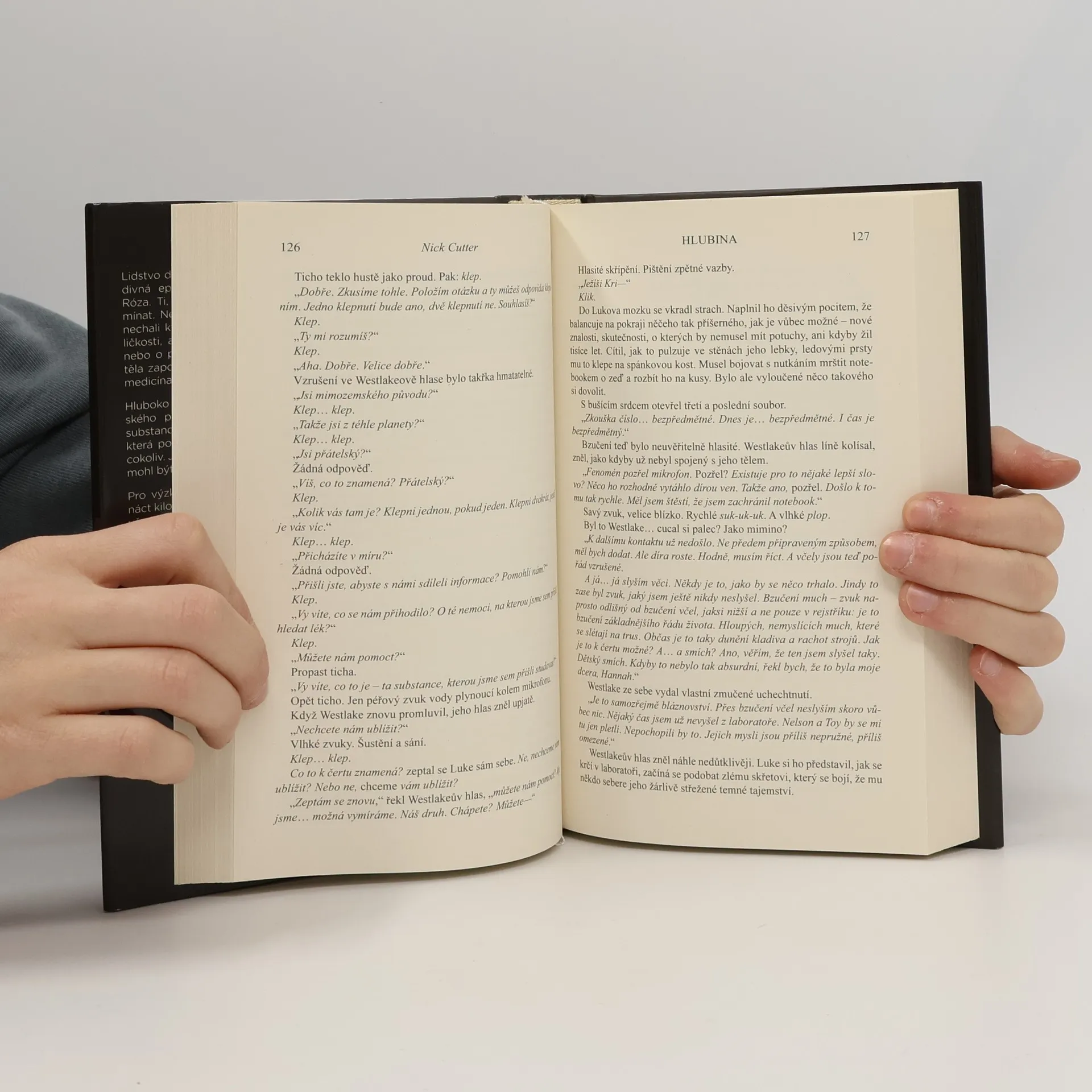 Šetřte si dech na poslední zaječení… Lidstvo decimuje v globálním měřítku podivná epidemie lidově označovaná jako Róza. Ti, kteří ji dostanou, začnou zapomínat – nejprve jen maličkosti, jako kde si nechali klíče… pak už ne takové maličkosti, jako jak řídit auto nebo písmena abecedy. Nakonec jejich těla zapomenou, jak fungovat. A moderní medicína je bezmocná. Hluboko v Tichém oceánu, na dně Marianského příkopu, byla objevena neznámá substance pracovně nazvaná ‚ambrózie‘ – která podle prvních zpráv dokáže vyléčit cokoliv. Je docela možné, že právě tohle by mohl být lék schopný poradit si s Rózou. Pro výzkum tohoto fenoménu byla jedenáct kilometrů pod hladinou oceánu vystavěna speciální výzkumná laboratoř Trieste obsazená trojicí špičkových vědců. Když se ale náhle přeruší spojení s ní, je do temných vod oceánu vyslána dvoučlenná záchranná výprava v naději, že záhadu vysvětlí… a místo toho se setká se zlem temnějším, než si kdo vůbec dokáže představit. Hlubina je dílem horor a dílem psychologická noční můra, kterou si nesmí nechat ujít žádný čtenář Stephena Kinga a Cliva Barkera - zvlášť pokud se bojí tmy.