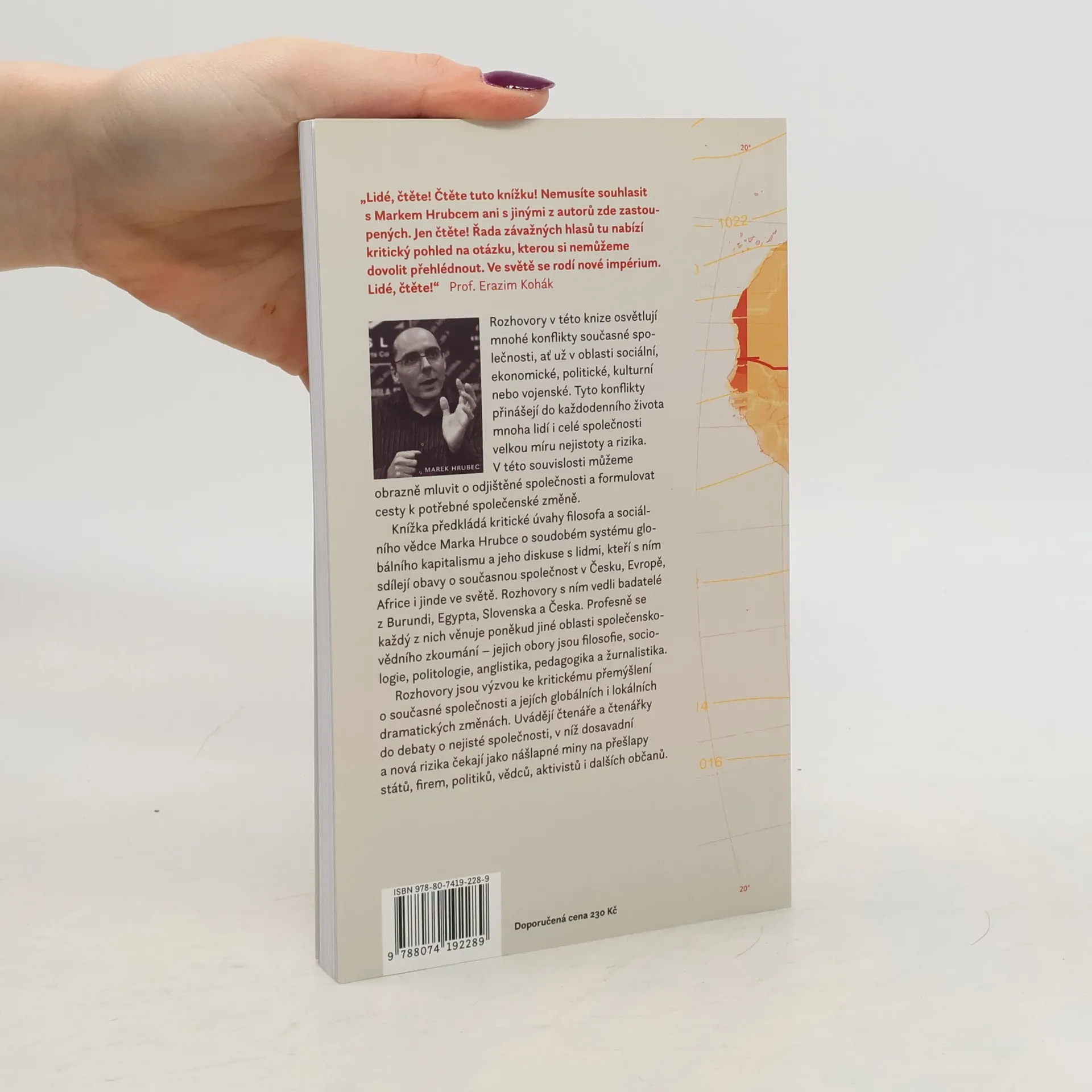 Rozhovory v této knize osvětlují mnohé konflikty současné společnosti, ať už v oblasti sociální, ekonomické, politické, kulturní nebo vojenské. Tyto konflikty přinášejí do každodenního života mnoha lidí i celé společnosti velkou míru nejistoty a rizika. V této souvislosti můžeme obrazně mluvit o odjištěné společnosti a formulovat cesty k potřebné společenské změně. Knížka předkládá kritické úvahy filosofa a sociálního vědce Marka Hrubce o soudobém systému globálního kapitalismu a jeho diskuse s lidmi, kteří s ním sdílejí obavy o současnou společnost v Česku, Evropě, Africe i jinde ve světě. Rozhovory s ním vedli badatelé z Burundi, Egypta, Slovenska a Česka. Profesně se každý z nich věnuje poněkud jiné oblasti společenskovědního zkoumání – jejich obory jsou filosofie, sociologie, politologie, anglistika, pedagogika a žurnalistika. Rozhovory jsou výzvou ke kritickému přemýšlení o současné společnosti a jejích globálních i lokálních dramatických změnách. Uvádějí čtenáře a čtenářky do debaty o nejisté společnosti, v níž dosavadní a nová rizika čekají jako nášlapné miny na přešlapy států, firem, politiků, vědců, aktivistů i dalších občanů.