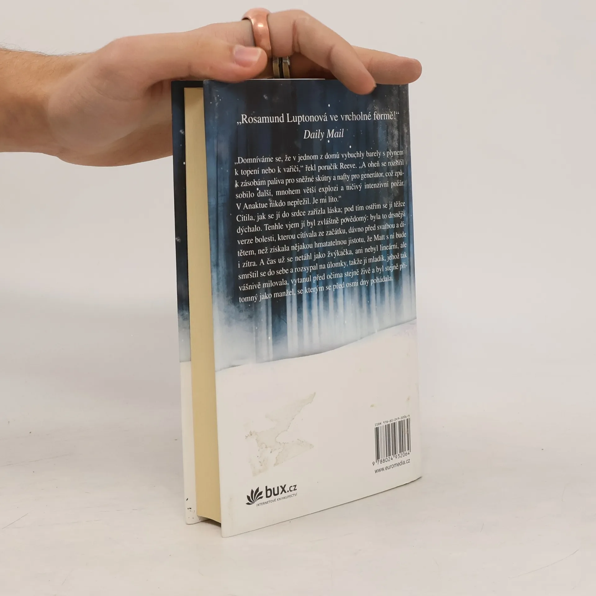 24. listopadu se Angličanka Yasmin s desetiletou dcerou Ruby vydají na cestu přes severní Aljašku. Pátrají po Rubyině otci Mattovi, který se při katastrofálním požáru inuitské vesnice ztratil v polární divočině. S každou další mrazivou mílí se hrouží stále hlouběji do nekonečné polární noci. A Ruby, která je od narození úplně hluchá, musí čelit temnotě, v níž se nemůže dát vést ani zrakem. Nehodlá milovaného otce opustit za žádnou cenu. Avšak zima je svírá v ledových spárech stále pevněji… a kdosi je ve tmě sleduje. „Rosamund Luptonová ve vrcholné formě!“ Daily Mail „Elegantní, ledově jedinečný thriller – nic podobného už letos číst nebudete.“ The Observer