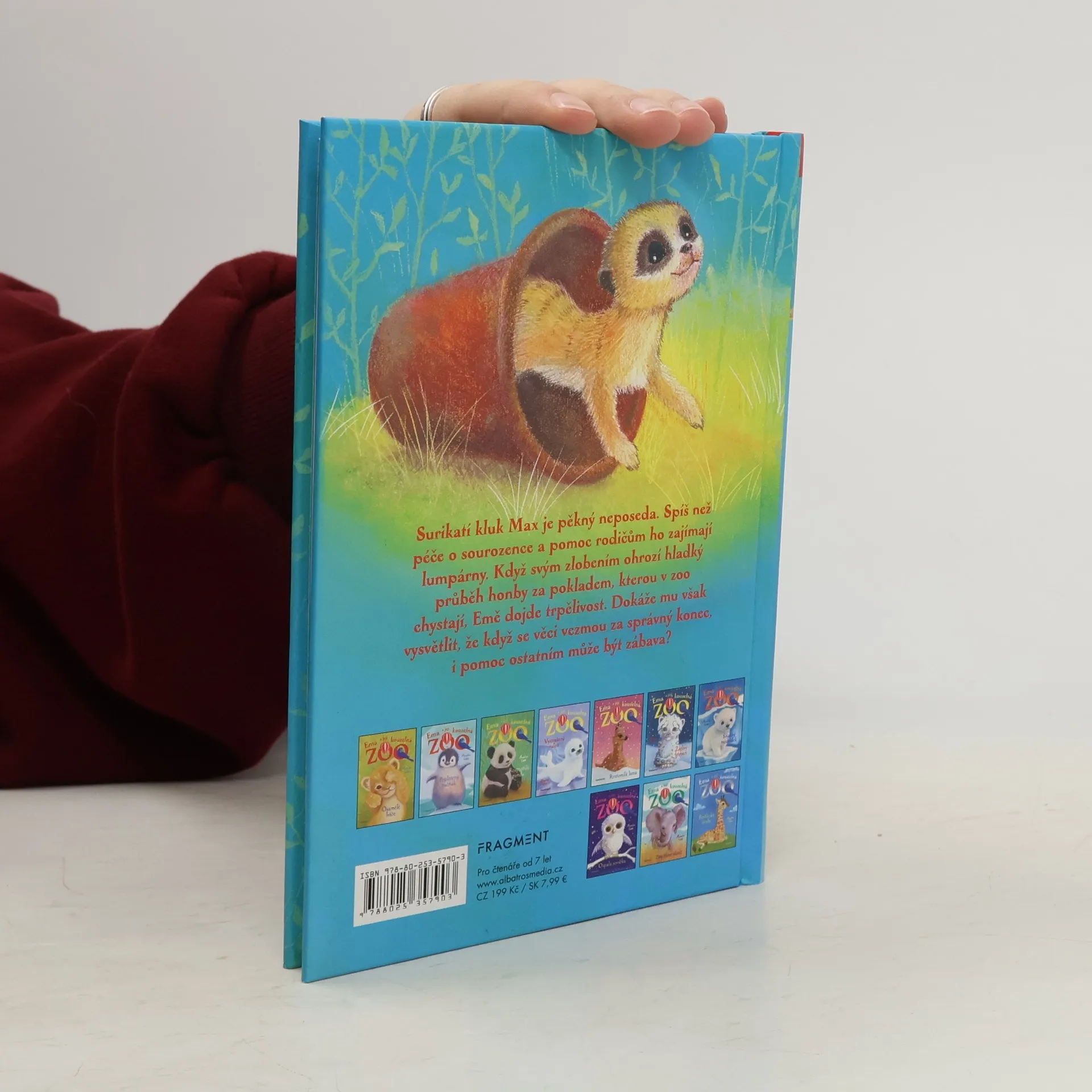 Surikatí kluk Max je pěkný neposeda. Spíš než péče o sourozence a pomoc rodičům ho zajímají lumpárny. Když svým zlobením ohrozí hladký průběh honby za pokladem, kterou v zoo chystají, Emě dojde trpělivost. Dokáže mu však vysvětlit, že když se věci vezmou za správný konec, i pomoc ostatním může být zábava?