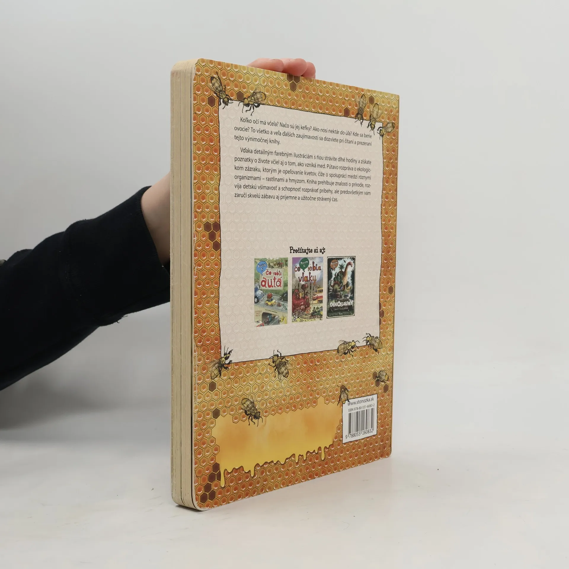 Koľko očí má včela? Načo sú jej kefky? Ako nosí nektár do úľa? Kde sa berie ovocie? To všetko a veľa ďalších zaujímavostí sa dozviete pri čítaní a prezeraní tejto výnimočnej knihy. Vďaka detailným farebným ilustráciám s ňou strávite dlhé hodiny a získate poznatky o živote včiel aj o tom, ako vzniká med. Pútavo rozpráva o ekologickom zázraku, ktorým je opeľovanie kvetov, čiže o spolupráci medzi rôznymi organizmami – rastlinami a hmyzom. Kniha prehlbuje znalosti o prírode, rozvíja detskú všímavosť a schopnosť rozprávať príbehy, ale predovšetkým vám zaručí skvelú zábavu aj príjemne a užitočne strávený čas.