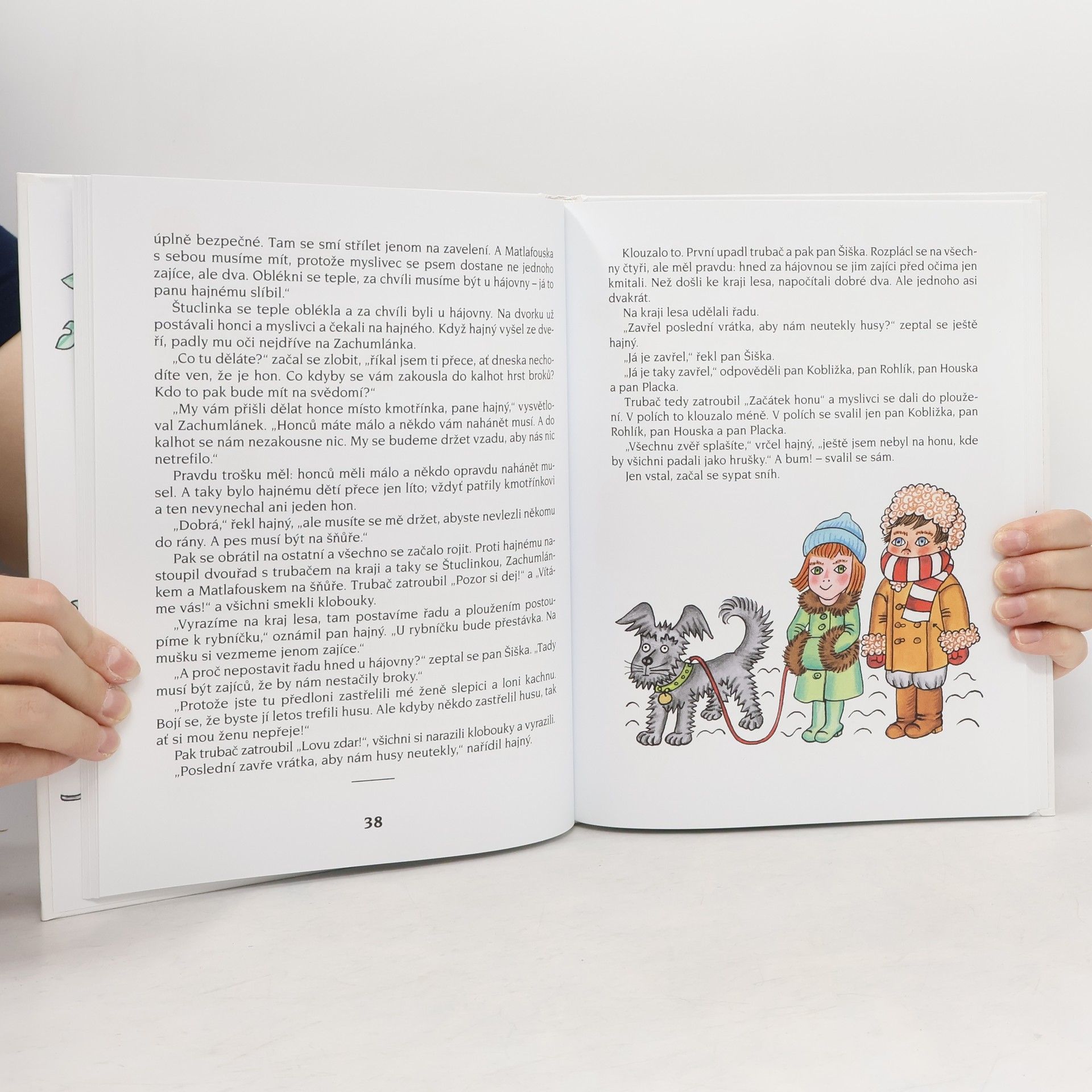 Zimní příběh o dvou šikovných dětech, které si dokáží samy poradit, když kmotřínek, který se o ně stará, nečekaně onemocní, protože mu došel česnek, a musí do nemocnice. Štuclinka se Zachumlánkem občas s obtížemi, ale vždy vtipně a se spoustou fantazie vyřeší, jak zateplit pumpu, jak zachránit dusící se kapry, jak porazit soušku, jak sestrojit dřevošmik, jak rozveselit kmotřínka mikulášskou nadílkou i jak napéct cukroví. Když je toho na ně moc, pomáhá jim pejsek Matlafousek, hajný s hajnou, která nosí v hlavě snad všechny svaté z kalendáře, i hodný pan doktor se sestřičkou. Nenapodobitelné vypravěčské umění Františka Nepila v tomto půvabném, laskavém, nápaditém a hlavně ryze českém příběhu potěší nejen děti, ale i jejich rodiče a prarodiče.