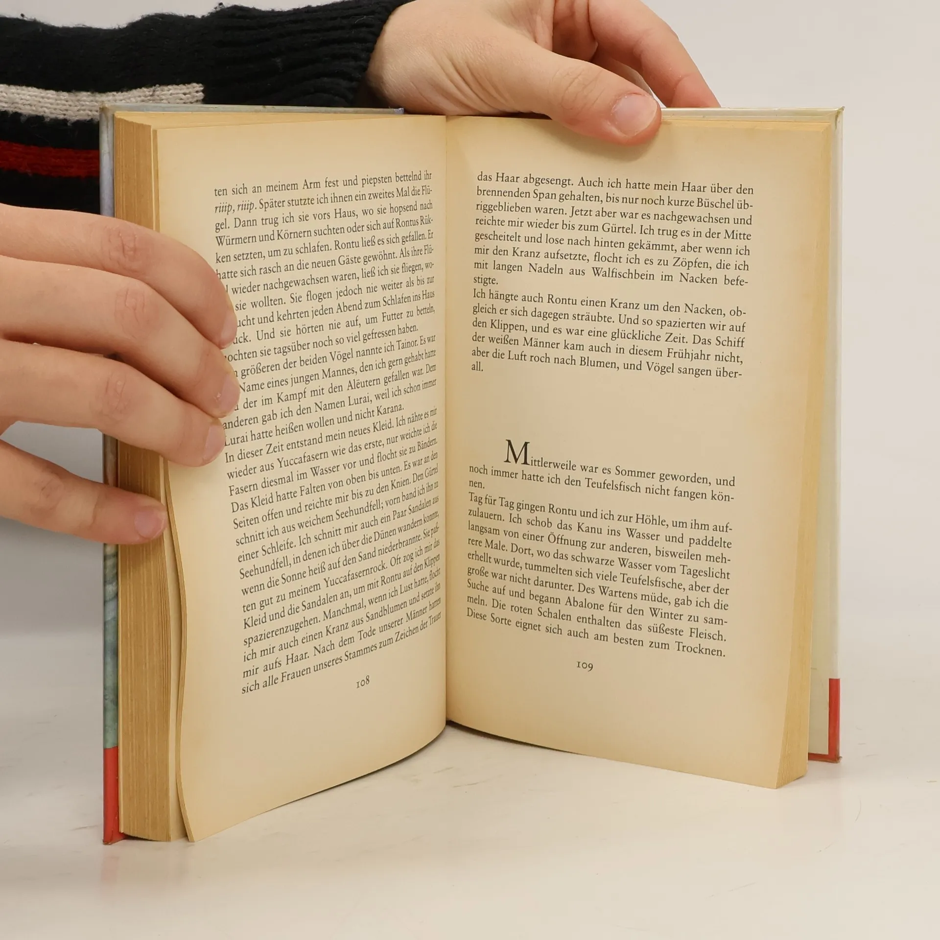 Das Robinson Crusoe-Mädchen, dessen Geschichte hier erzählt wird, lebte tatsächlich von 1835 bis 1853 allein auf einer einsamen Insel im Pazifik und hat als "die Verschollene von San Nicolas" historische Berühmtheit erlangt. Die Erzählung versucht, diesem Schicksal dichterisch nachzuspüren. Der Autor lässt das Mädchen selbst vom Hergang der Ereignisse berichten. Einsam und ganz auf sich gestellt, hat sie jeden Tag neu die Aufgaben und Abenteuer, die ihr begegnen und denen sie in Einfalt und Herzenstapferkeit nicht ausweicht, zu bestehen. Ein außergewöhnliches Schicksal wird hier zum Bild und Gleichnis des menschlichen Lebens, das nur mit Mut, Vertrauen und Zuversicht gelebt werden kann.
