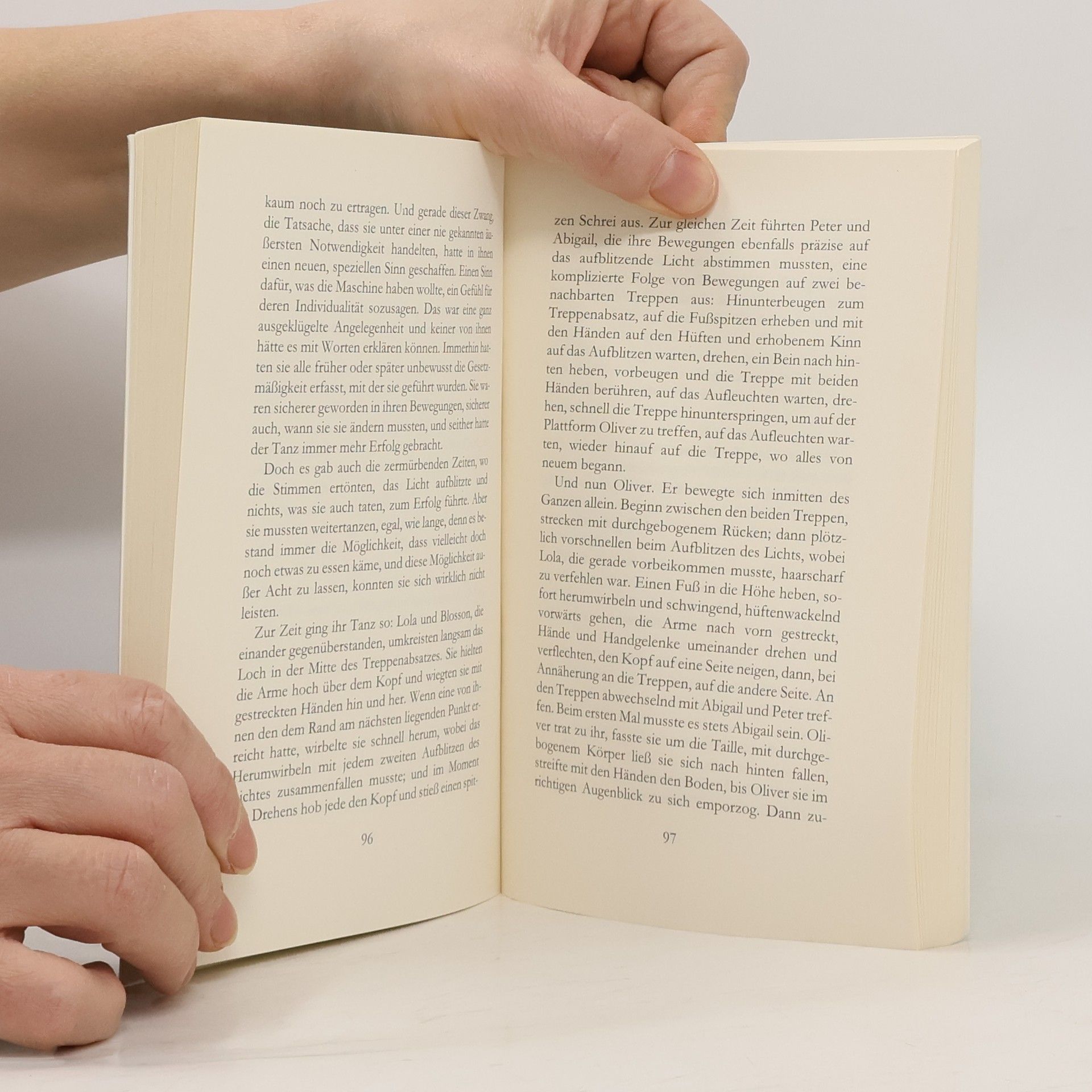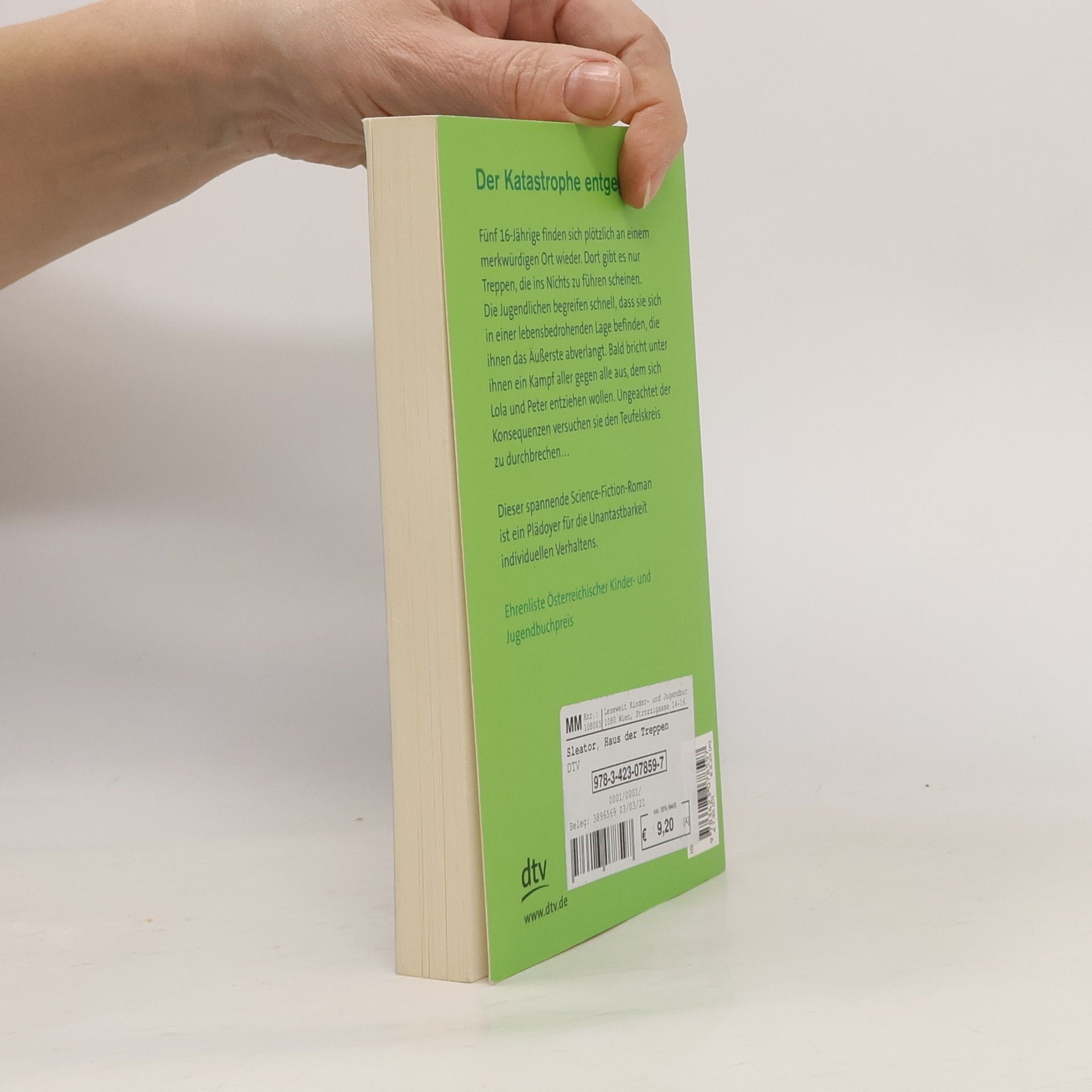Fünf Sechzehnjährige finden sich plötzlich an einem Ort wieder, wo es nur Treppen gibt, die ins Nichts zu führen scheinen. Die Jugendlichen begreifen schnell, dass sie in eine Extremsituation geraten sind und das es nur darauf ankommt, zu überleben. Es bricht ein Kampf aller gegen alle aus.Ein spannender Sciencefictionroman, der zeigt, wie unterschiedlich Menschen in außergewöhnlichen Situationen reagieren.