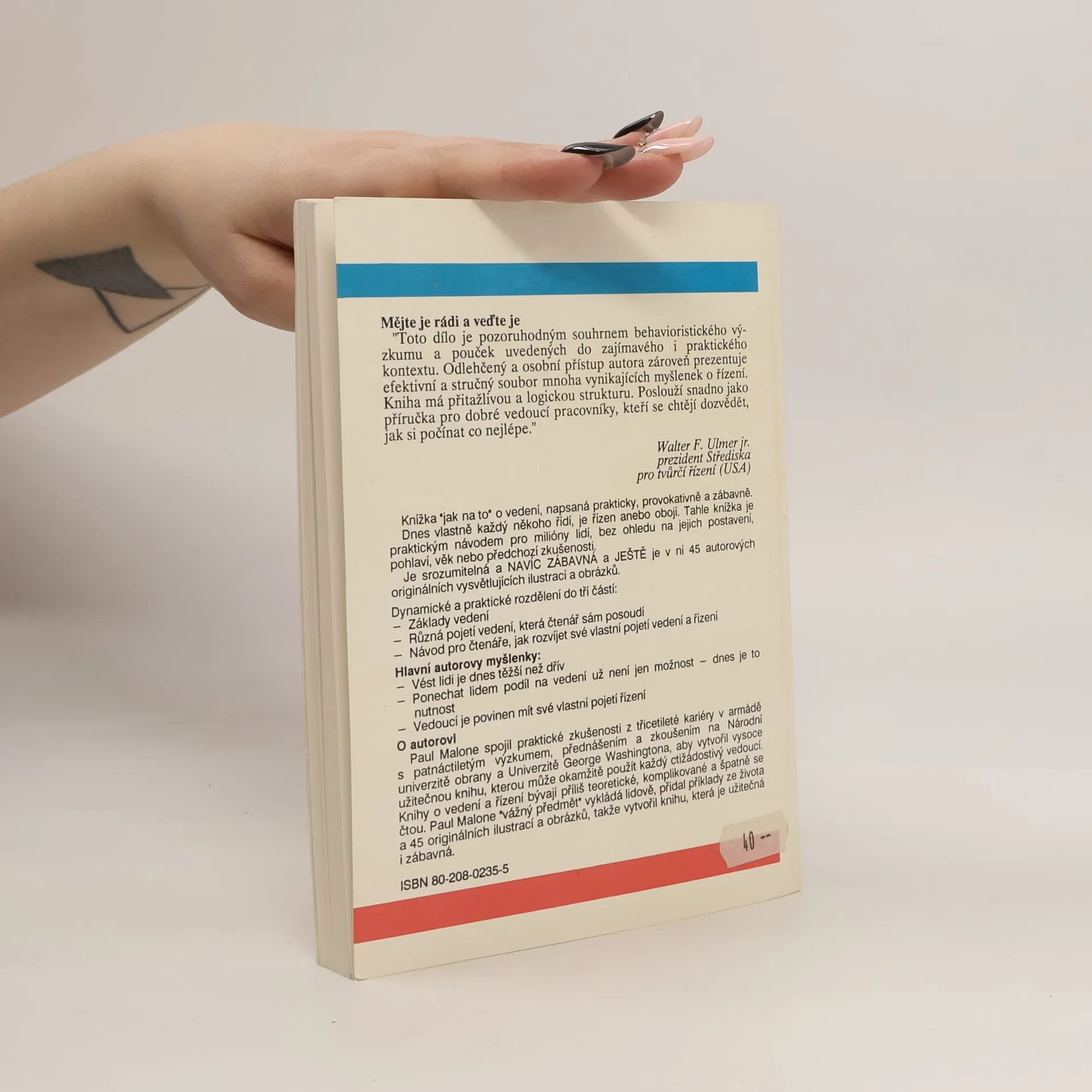 Podtitul: Jak vést lidi; kniha pro každého Populární příručka o řízení a zejména o vedení pracovního kolektivu lidí je vybavena obrázky a řadou praktických příkladů.