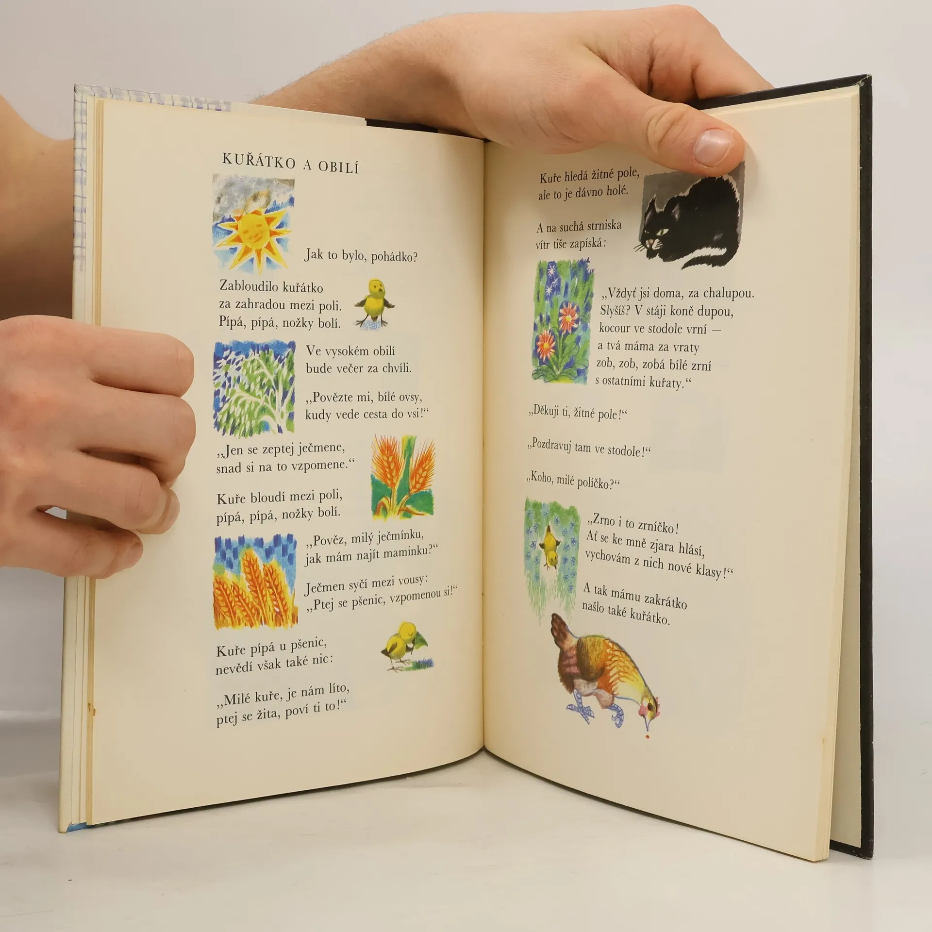 Známé pohádky přebásnil nádherným jazykem František Hrubín a vznikla půvabná knížka pro nejmenší děti. V hravých a dobře zapamatovatelných verších se děti skamarádí s Červenou karkulkou, Budulínkem, Otesánkem, Palečkem i Smolíčkem, ochutnají Perníkovou chaloupku, Dědečkův koblížek i Velikou řepu, proběhnou se s kuřátkem v obilí a se zvířátky v začarovaném lese. Půvabná a nestárnoucí knížka, po níž je stále sháňka, je vhodná k předčítání i pro první samostatné čtení.