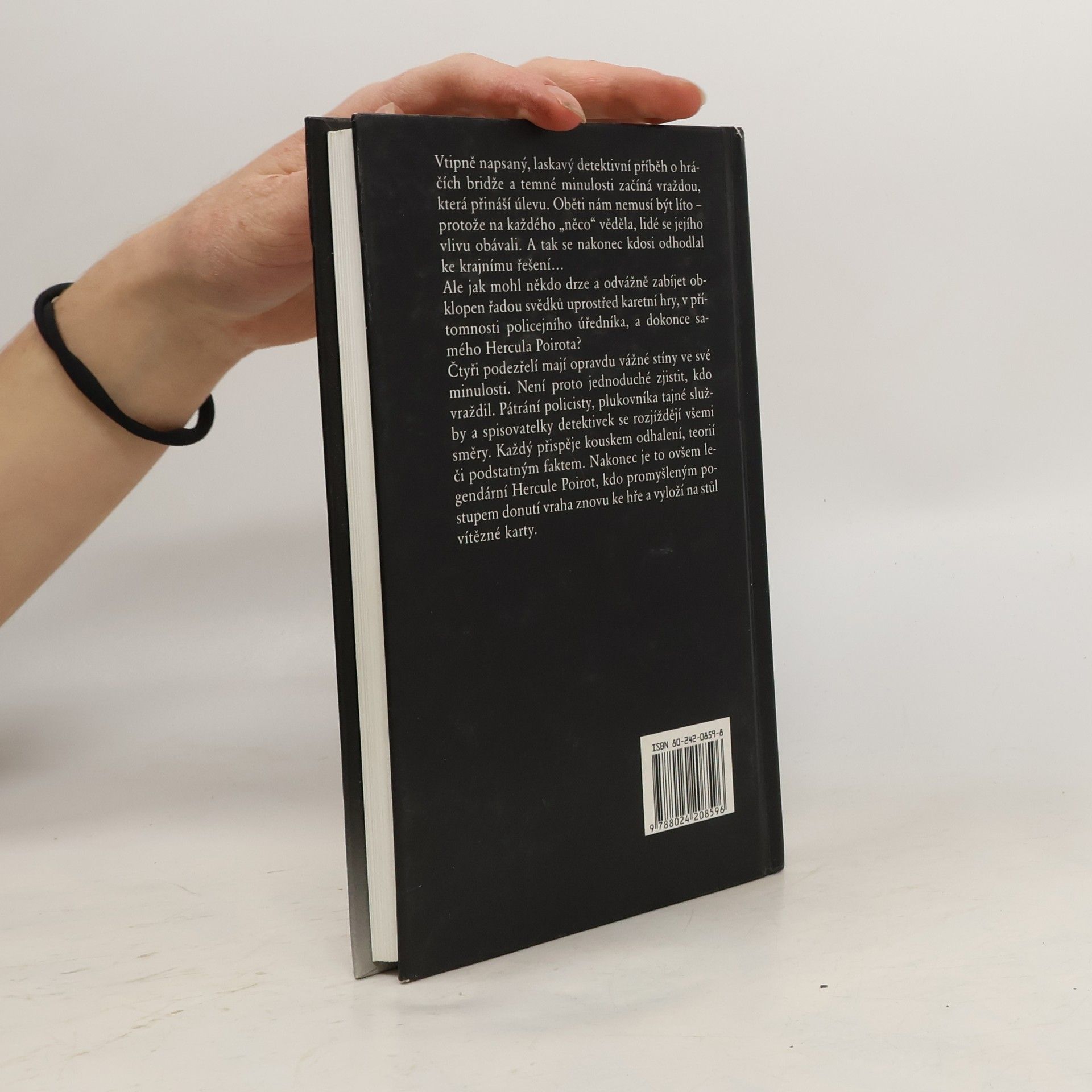 Vtipně napsaný, laskavý detektivní příběh o hráčích bridže a temné minulosti začíná vraždou, která přináší úlevu. Oběti nám nemusí být líto – protože na každého „něco“ věděla, lidé se jejího vlivu obávali. A tak se nakonec kdosi odhodlal až ke krajnímu řešení… Ale jak mohl někdo drze a odvážně zabíjet, obklopen řadou svědků, uprostřed karetní hry, v přítomnosti policejního úředníka, a dokonce samého Hercula Poirota? Čtyři podezřelí mají opravdu vážné stíny ve své minulosti. Není proto jednoduché zjistit, kdo vraždil kdysi i nyní. Pátrání policejního úředníka, plukovníka tajné služby a spisovatelky detektivek se rozjíždějí všemi směry. Každý přispěje kouskem odhalení, teorií či podstatným faktem. Nakonec je to ovšem Hercule Poirot, kdo promyšleným postupem donutí vraha znovu ke hře a vyloží na stůl vítězné karty.... celý text