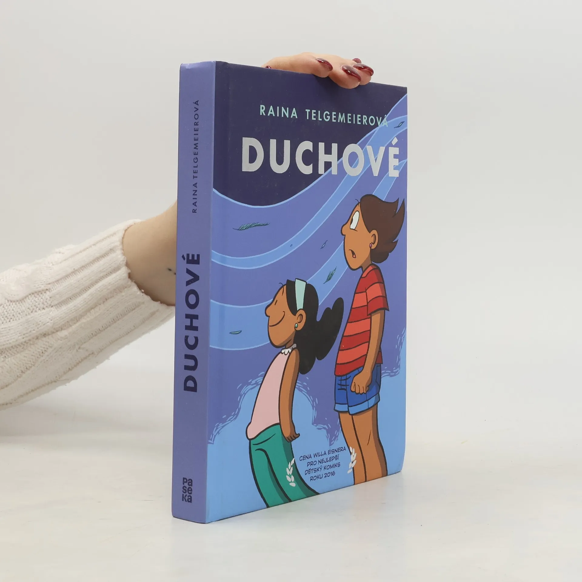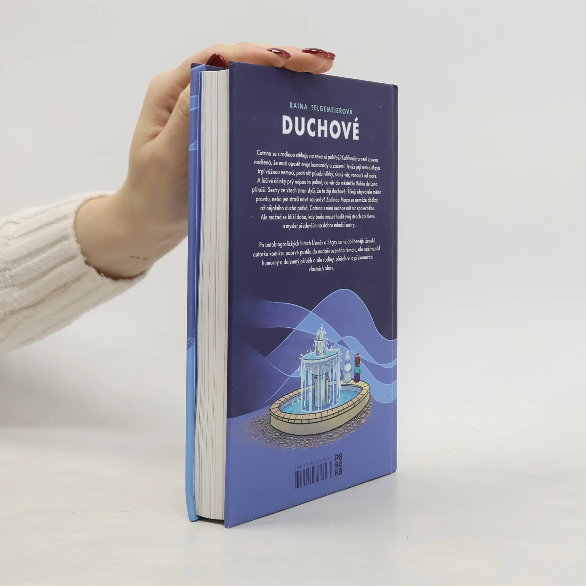 Catrina se s rodinou stěhuje na pobřeží Severní Kalifornie a není zrovna nadšená, že musí opustit svoje kamarády a zázemí. Jenže její sestra Maya trpí vážnou nemocí, proti níž působí vlhký, slaný vítr, vanoucí od moře. A léčivé účinky prý nejsou to jediné, co vítr do městečka Bahía de Luna přináší. Sestry ze všech stran slyší, že tu žijí duchové. Říkají obyvatelé města pravdu, nebo jen straší nové sousedy? Zatímco Maya se nemůže dočkat, až nějakého ducha potká, Catrina s nimi nechce mít nic společného. Ale možná se blíží doba, kdy bude muset hodit svůj strach za hlavu a myslet především na dobro mladší sestry… Po autobiografických hitech Úsměv a Ségry se nejoblíbenější ženská autorka komiksu poprvé pustila do nadpřirozeného tématu, ale opět vznikl humorný a dojemný příběh o síle rodiny, přátelství a překonávání vlastních obav. To, že Duchové získali komiksového Oscara – Cenu Willa Eisnera – pro nejlepší dětský komiks roku 2016, není žádná strašidelná náhoda.