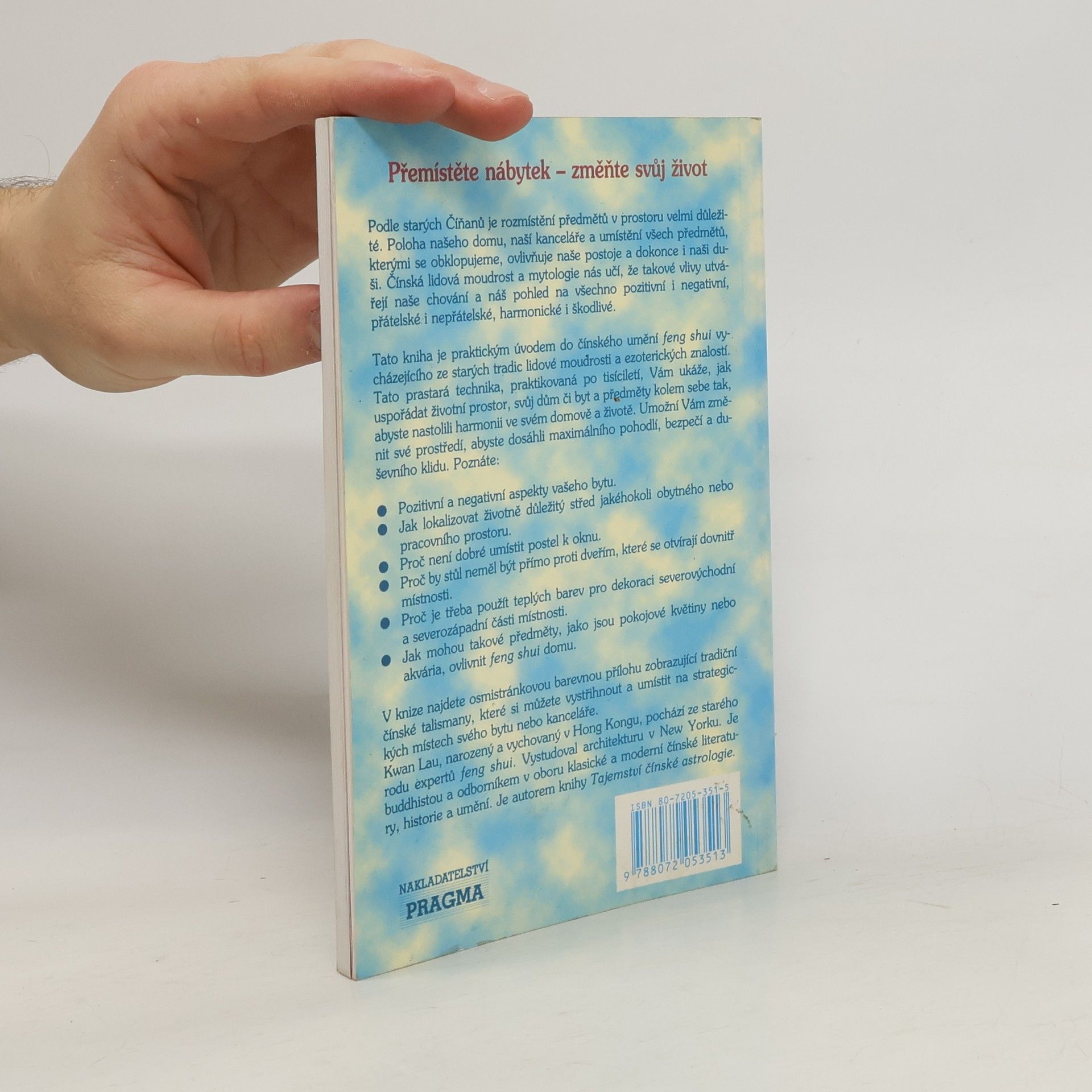 Kniha je praktickým úvodem do prastarého čínského umění Feng (čínsky vítr) Shui (čínsky voda) - harmonického rozmísťování předmětů v prostoru. Ukáže vám, jak si uspořádat životní prostor, svůj dům či byt a předměty kolem sebe tak, abyste se cítili co možná nejlépe.