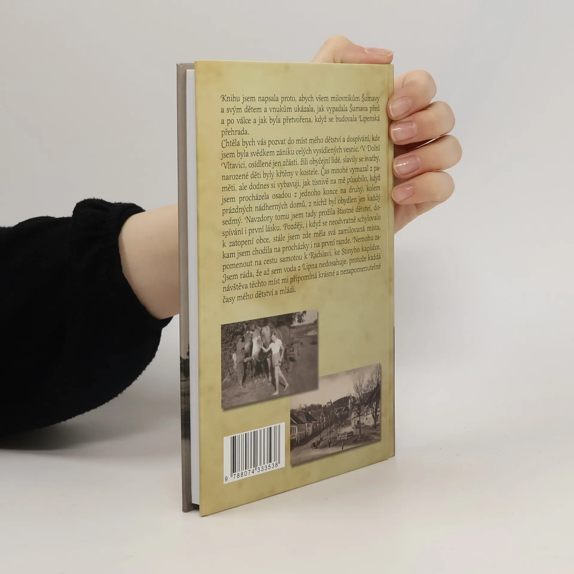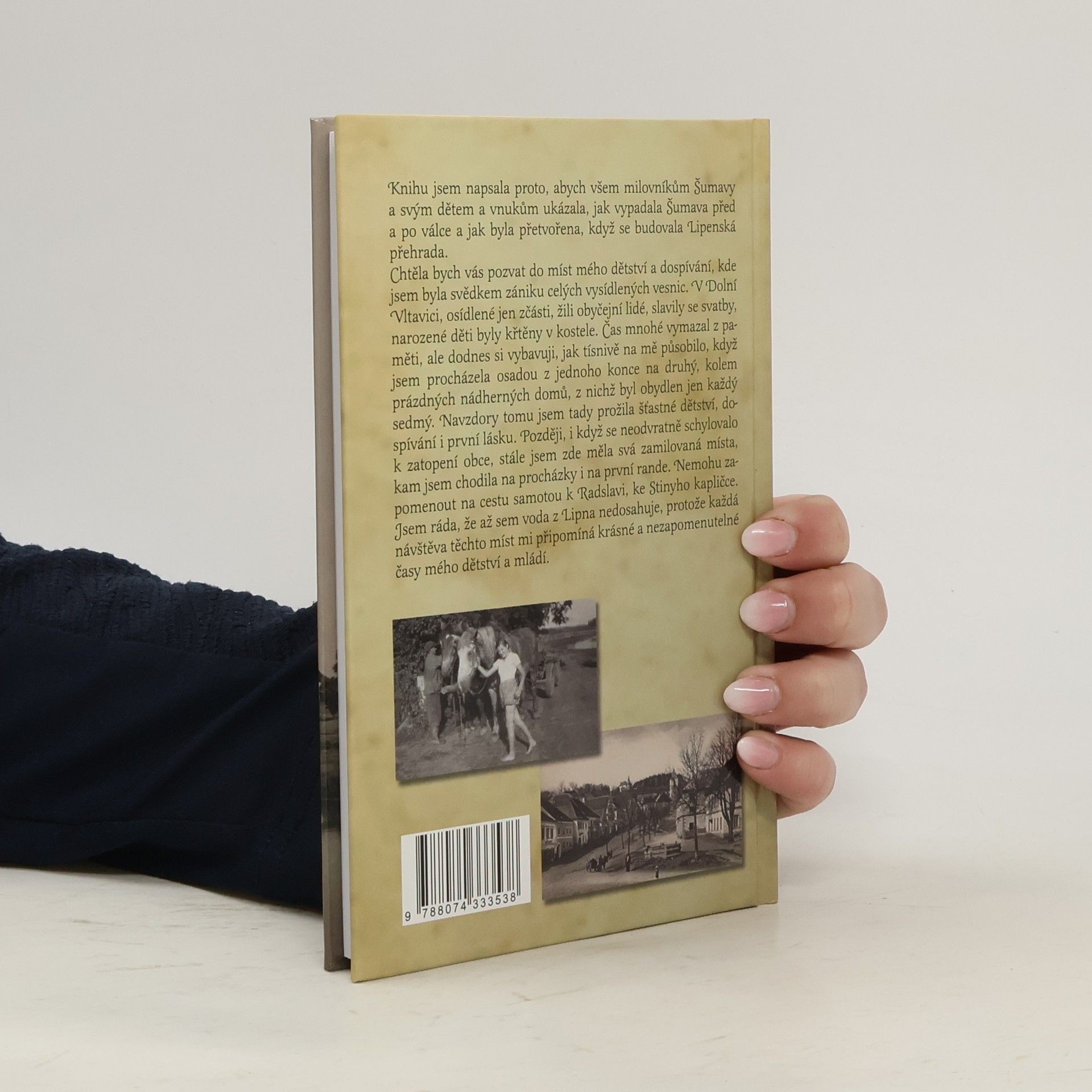 Knihu jsem napsala proto, abych všem milovníkům Šumavy a svým dětem a vnukům, ukázala, jak vypadala Šumava před a po válce a jak byla přetvořena, když se budovala Lipenská přehrada.Chtěla bych vás pozvat do míst mého dětství a dospívání, kde jsem byla svědkem zániku celých vysídlených vesnic. V Dolní Vltavici, osídlené jen zčásti, žili obyčejní lidé, slavily se svatby,narozené děti byly křtěny v kostele. Čas mnohé vymazal z paměti, ale dodnes si vybavuji, jak tísnivě na mě působilo,když jsem procházela osadou z jednoho konce na druhý, kolem prázdných nádherných domů, z nichž byl obydlen jen každý sedmý. Navzdory tomu jsem tady prožila šťastné dětství, dospívání i první lásku. Později, i když se neodvratně schylovalo k zatopení obce, stále jsem zde měla svá zamilovaná místa,kam jsem chodila na procházky i na první rande. Nemohu zapomenout na cestu samotou k Radslavi, ke Stinyho kapličce. Jsem ráda, že až sem voda z Lipna nedosahuje, protože každá návštěva těchto míst mi připomíná krásné a nezapomenutelné časy mého dětství a mládí.