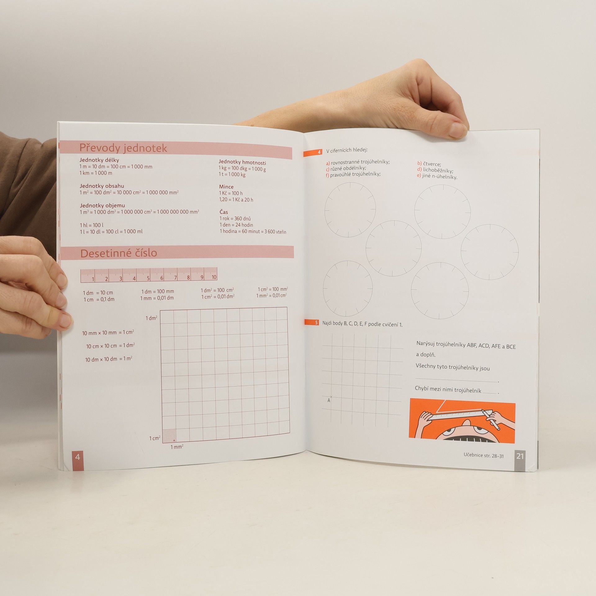 Pracovní sešit je součástí učebnice Matematika 5. V 1. díle je vložen přehled učiva, který vysvětluje dětem jednotlivá prostředí, objasňuje návaznost od 1. ročníku, kde princip řešení je stejný, jen nabývá učivo s vyšším ročníkem na náročnosti.