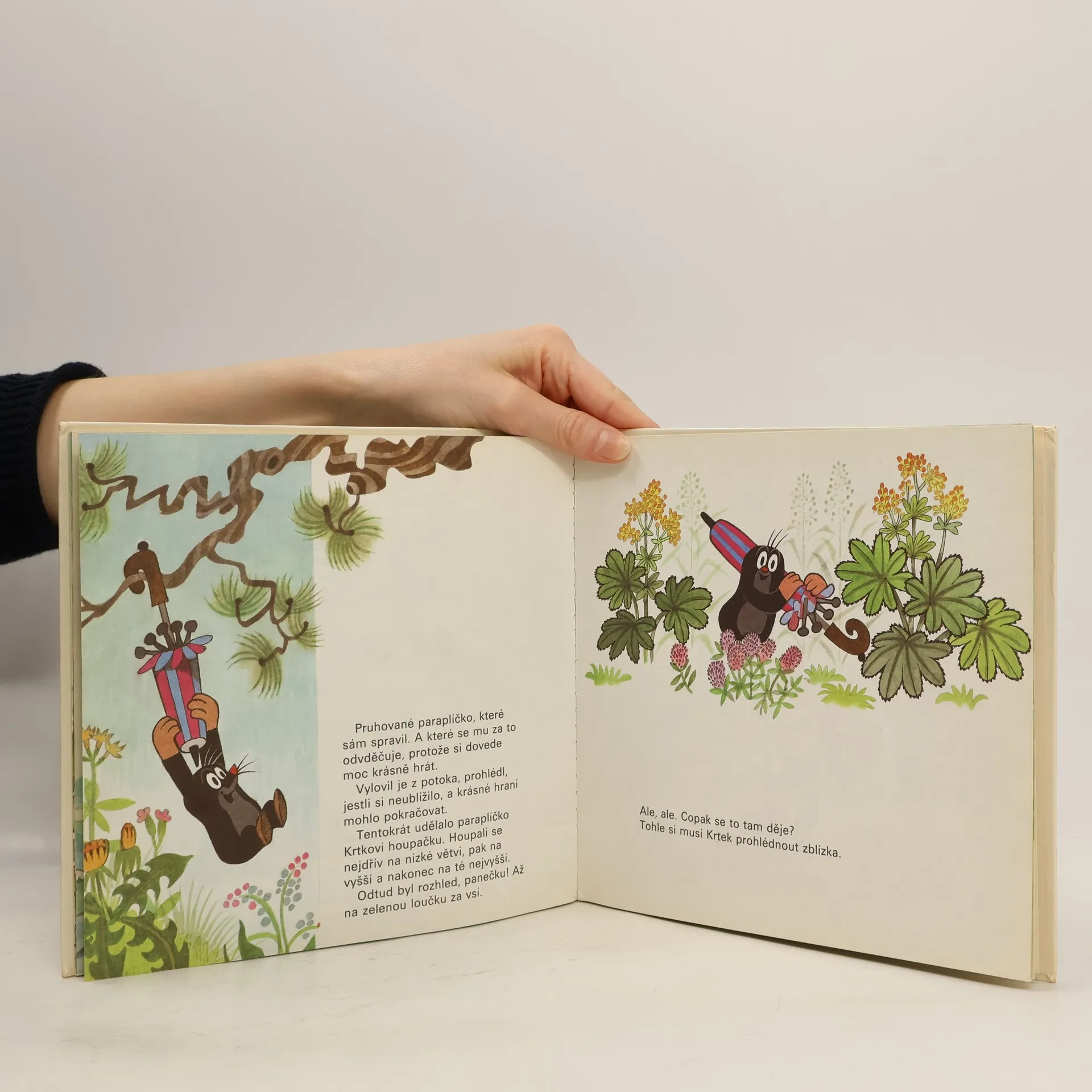 Další veselá dobrodružství Krtka, která děti už znají z kresleného filmu. Tentokrát si Krtek užije spoustu legrace s polámaným paraplíčkem, které našel na skládce. Opraví ho a pak už ho čeká jen zábava. Pluje na něm po řece a zachrání s jeho pomocí kamaráda zajíce před zlým psem. Na louce objeví pána, který má podobné paraplíčko a prodává pod ním melouny. Jeden od něj dostane a rozdělí se s ostatními zvířátky.... celý text