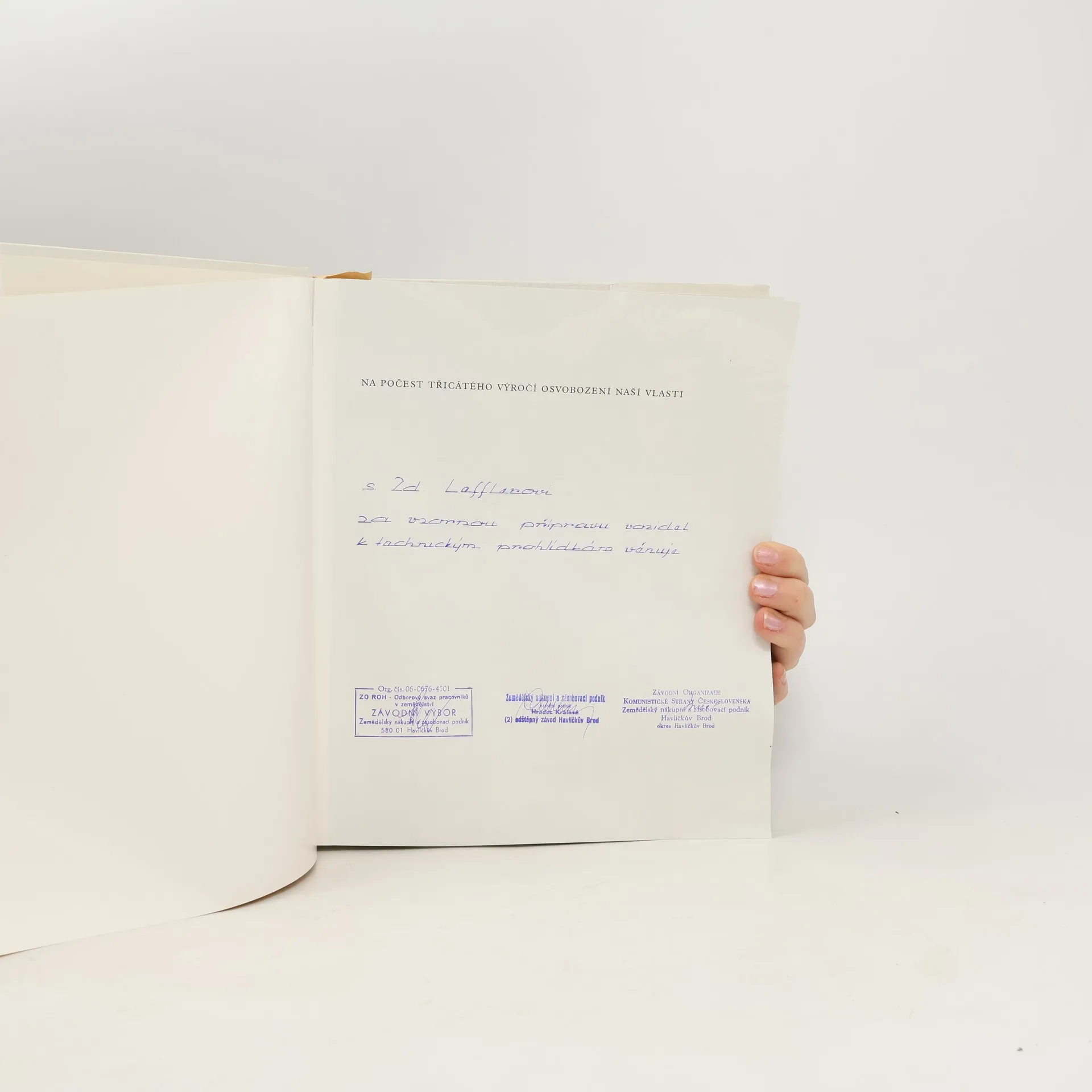 Fotografická publikace vznikla na počest 30. výročí osvobození a přibližuje život Prahy a Moskvy.