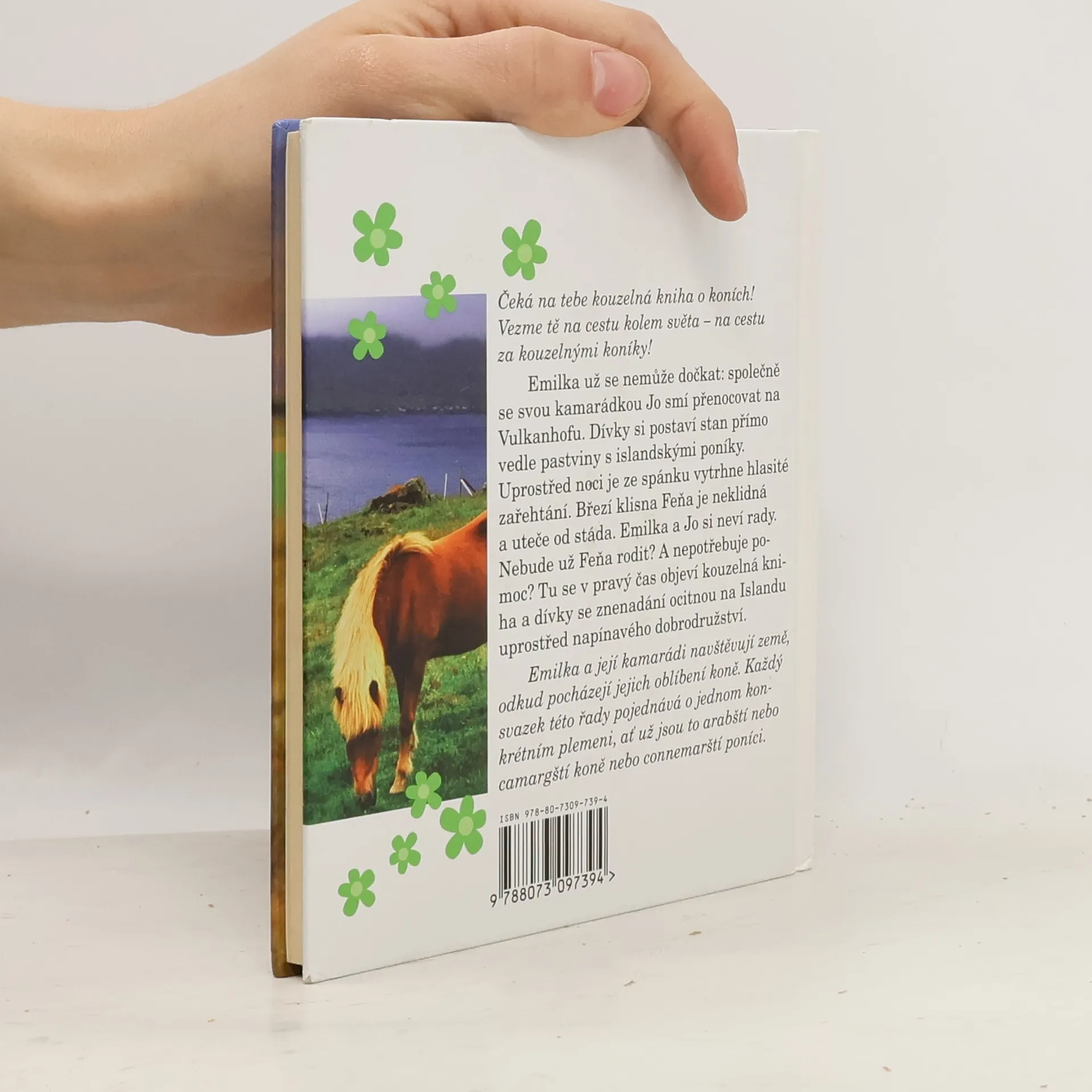 Čeká na tebe kouzelná kniha o koních! Vezme tě na cestu kolem světa - na cestu za kouzelnými koníky! Emilka už se nemůže dočkat: společně se svou kamarádkou Jo smí přenocovat na Vulkanhofu. Dívky si postaví stan přímo vedle pastviny s islandskými poníky. Uprostřed noci je ze spánku vytrhne hlasité zařehtání. Březí klisna Feňa je neklidná a uteče od stáda. Emilka a Jo si neví rady. Nebude už Feňa rodit? A nepotřebuje pomoc? Tu se v pravý čas objeví kouzelná kniha a dívky se znenadání ocitnou na Islandu uprostřed napínavého dobrodružství. Emilka a její kamarádi navštěvují země, odkud pocházejí jejich oblíbení koně. Každý svazek této řady pojednává o jednom konkrétním plemeni, ať už jsou to arabští nebo camargští koně nebo connemarští poníci.