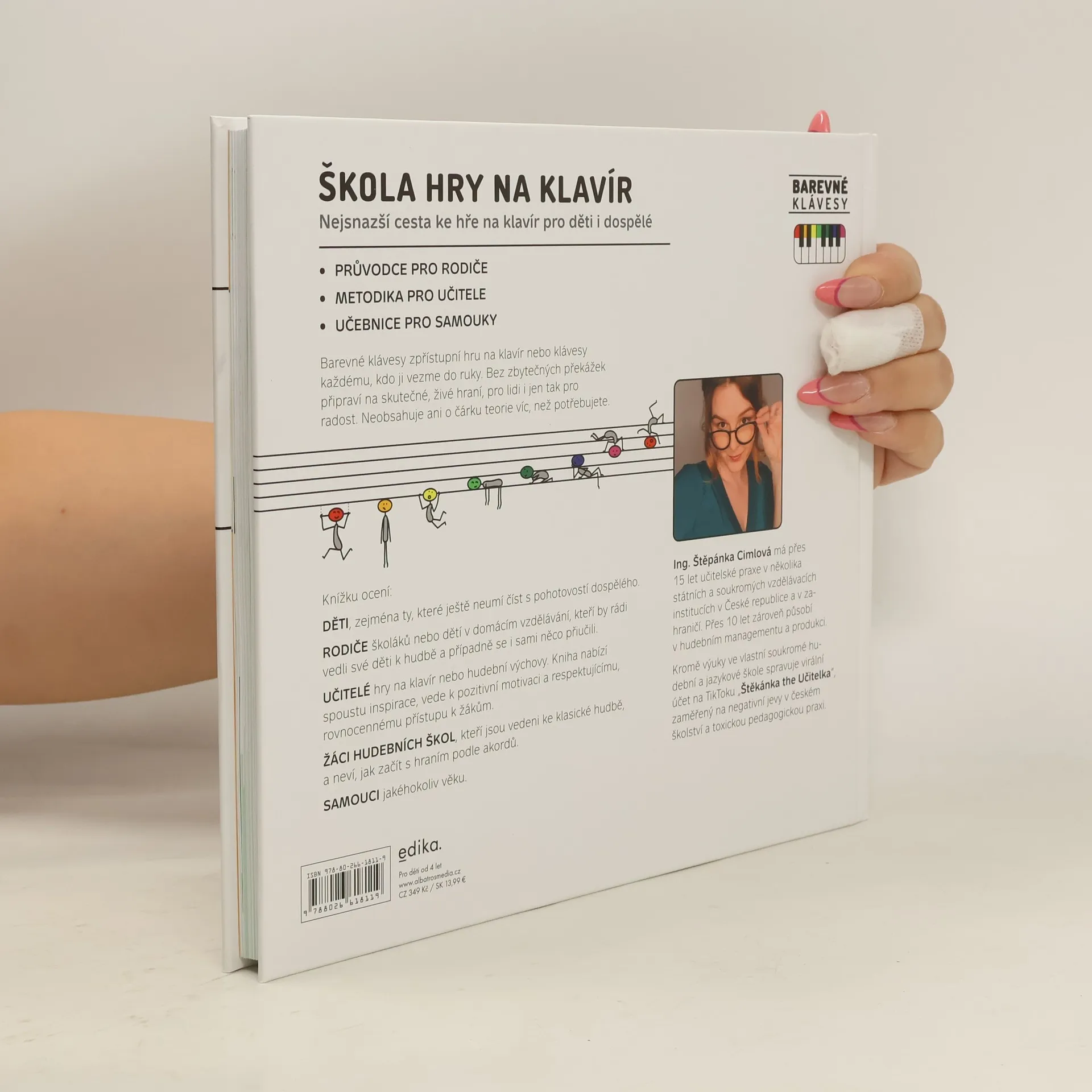 Metoda Barevné klávesy zpřístupní hru na klavír nebo klávesy dětem i dospělým. Bez zbytečných překážek připraví na skutečné, živé hraní, pro lidi i jen tak pro radost. Neobsahuje ani o čárku teorie víc, než potřebujete. Knihu přivítají děti a jejich rodiče, učitelé hry na klavír, žáci hudebních škol i samouci jakéhokoliv věku. Představuje široké spektrum hudby od hraní podle akordů ve zpěvníku až po filmové soundtracky zapsané v notách.