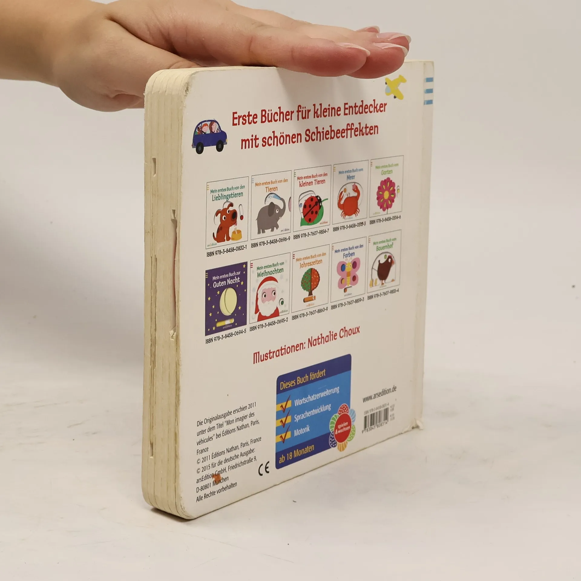 Ein Mitmachbuch für die Kleinsten, das spielerisch die Welt der Fahrzeuge erkundet. Auf fünf Doppelseiten werden das Feuerwehrauto, der Zug und viele weitere Fahrzeuge vorgestellt. Bunte, leicht erkennbare Bilder und eine klare Aufteilung ermöglichen es Kindern ab einem Jahr, in die Fahrzeugwelt einzutauchen. Die stabilen Schiebeelemente fördern nicht nur die Feinmotorik, sondern auch das Verständnis. Durch das Bewegen der großen Scheibe dreht sich beispielsweise der Hubschrauberpropeller. Sehen, zuhören und aktiv werden – so wird das Sprechenlernen zum Kinderspiel, ob zu Hause, bei der Oma, im Kindergarten oder in der Krippe. Das Buch vermittelt erstes Wissen über Fahrzeuge durch kindgerechte Bilder und motiviert zum Sprechen dank klarer Abbildungen. Gemeinsames Anschauen fördert die enge Bindung zwischen Eltern und Kind. Mit dicken Pappseiten und handlichem Format ist es perfekt für kleine Kinderhände. Die geprüfte Qualität garantiert Sicherheit und regelmäßige Kontrollen nach europäischen Spielzeugsicherheitsrichtlinien.