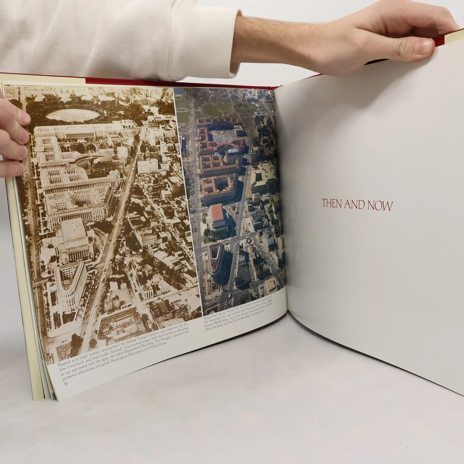 Photographs taken from the air present striking views of the buildings and monuments in Washington, D.C. and the surrounding area
