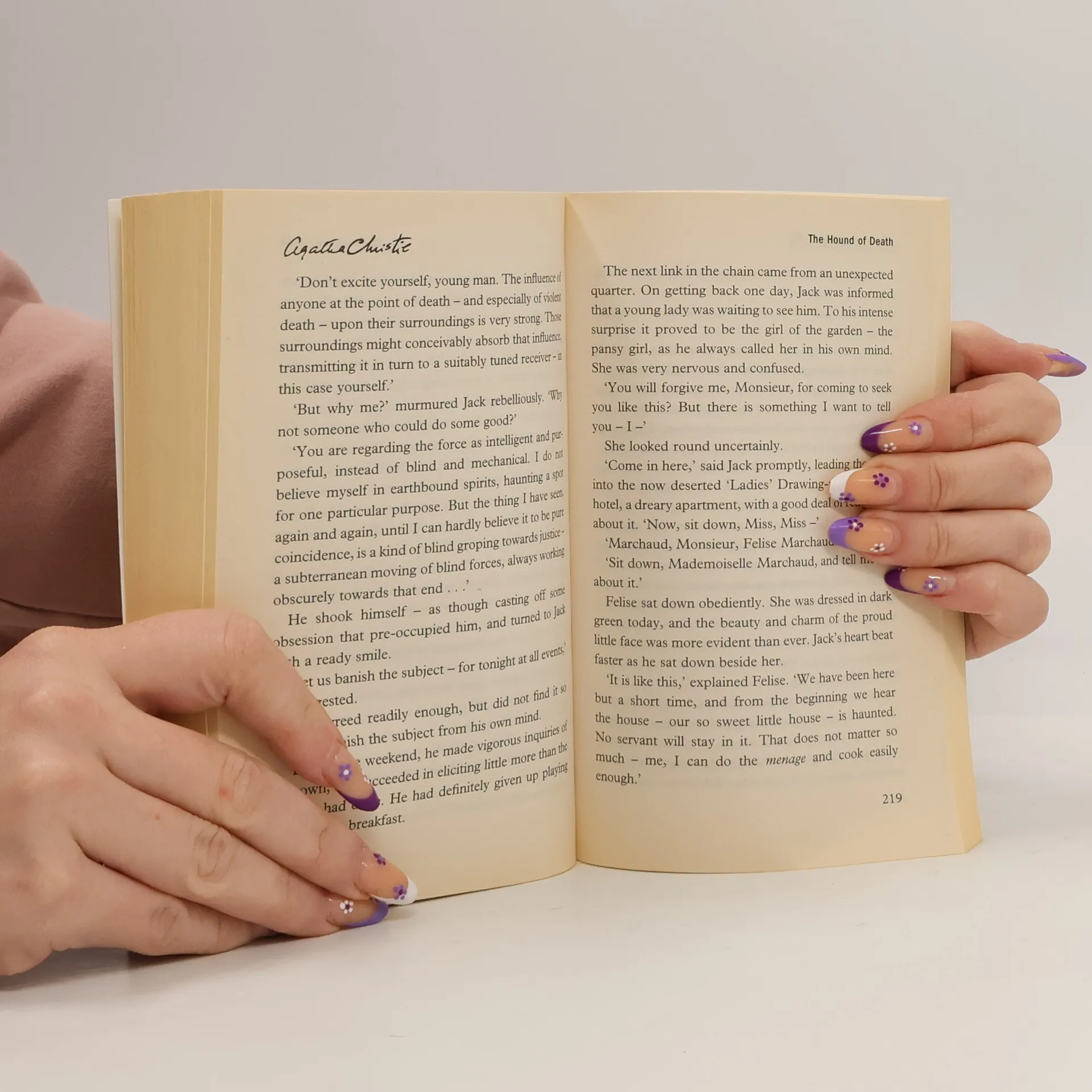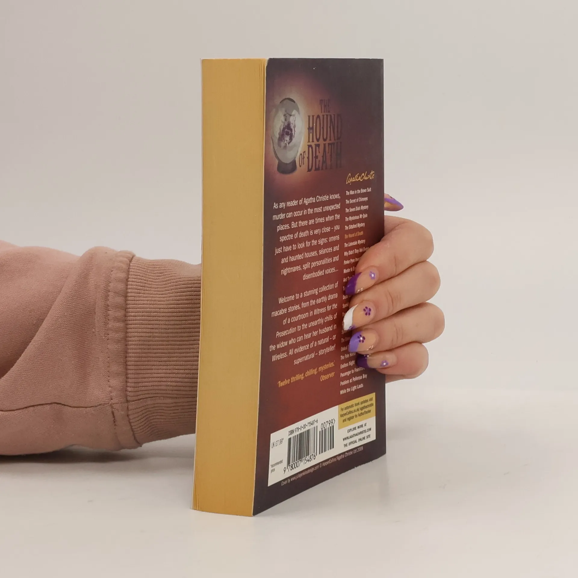 Twelve unexplained phenomena with no apparent earthly explanation, including a dog-shaped gunpowder mark; an omen from the "other side"; a haunted house; a chilling seance; an elderly lady's hold over a young man; and a mysterious SOS.ContentsS.O.S. • (1926) • short story by Agatha ChristieThe Call of Wings • (1933) • short story by Agatha ChristieThe Fourth Man • (1933) • short story by Agatha ChristieThe Gipsy • (1933) • short story by Agatha ChristieThe Hound of Death • (1933) • short story by Agatha ChristieThe Lamp • (1933) • short story by Agatha ChristieThe Last Séance • (1926) • short story by Agatha ChristieThe Mystery of the Blue Jar • (1924) • short story by Agatha ChristieThe Red Signal • (1924) • short story by Agatha ChristieThe Strange Case of Sir Arthur Carmichael • (1933) • short story by Agatha ChristieThe Witness for the Prosecution • non-genre • (1924) • novelette by Agatha ChristieWireless • (1926) • short story by Agatha Christie