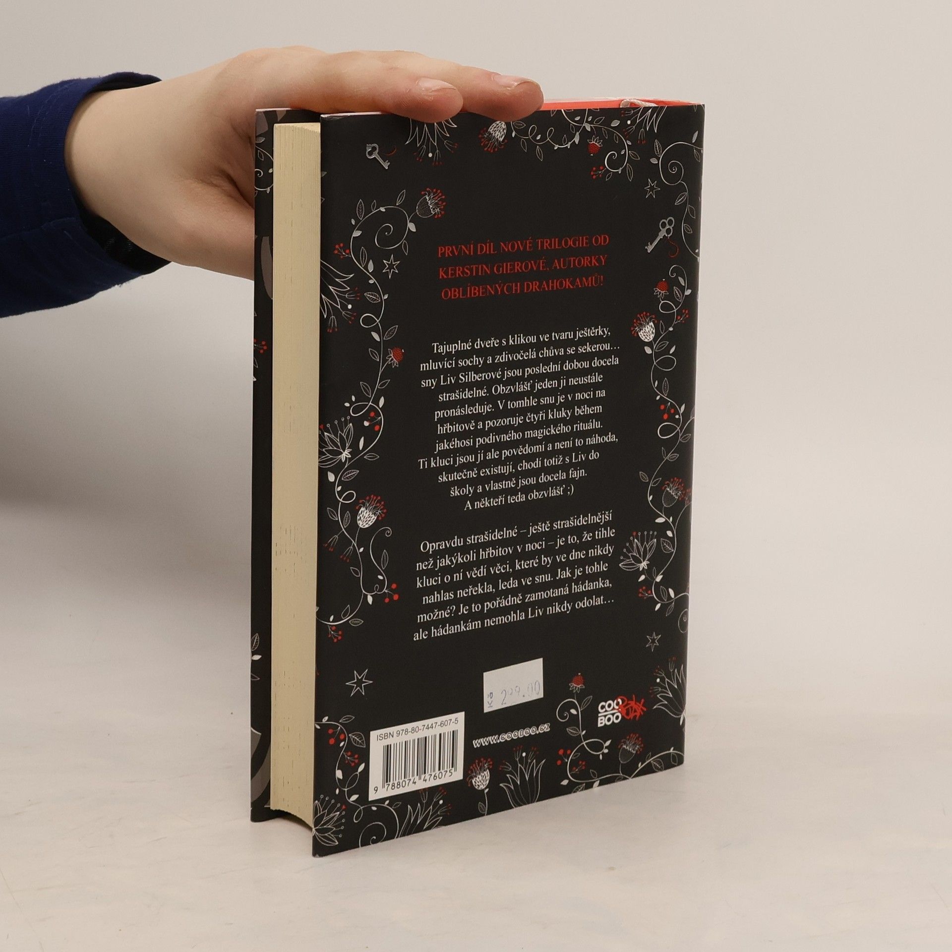 První díl nové trilogie od Kerstin Gierové, autorky oblíbených Drahokamů! Tajuplné dveře s klikou ve tvaru ještěrky, mluvící sochy a zdivočelá chůva se sekerou… sny Liv Silberové jsou poslední dobou docela strašidelné. Obzvlášť jeden ji neustále pronásleduje. V tomhle snu je v noci na hřbitově a pozoruje čtyři kluky během jakéhosi podivného magického rituálu. Ti kluci jsou jí ale povědomí a není to náhoda, skutečně existují, chodí totiž s Liv do školy a vlastně jsou docela fajn. A někteří teda obzvlášť ;) Opravdu strašidelné – ještě strašidelnější než jakýkoli hřbitov v noci – je to, že tihle kluci o ní vědí věci, které by ve dne nikdy nahlas neřekla, leda ve snu. Jak je tohle možné? Je to pořádně zamotaná hádanka, ale hádankám nemohla Liv nikdy odolat…