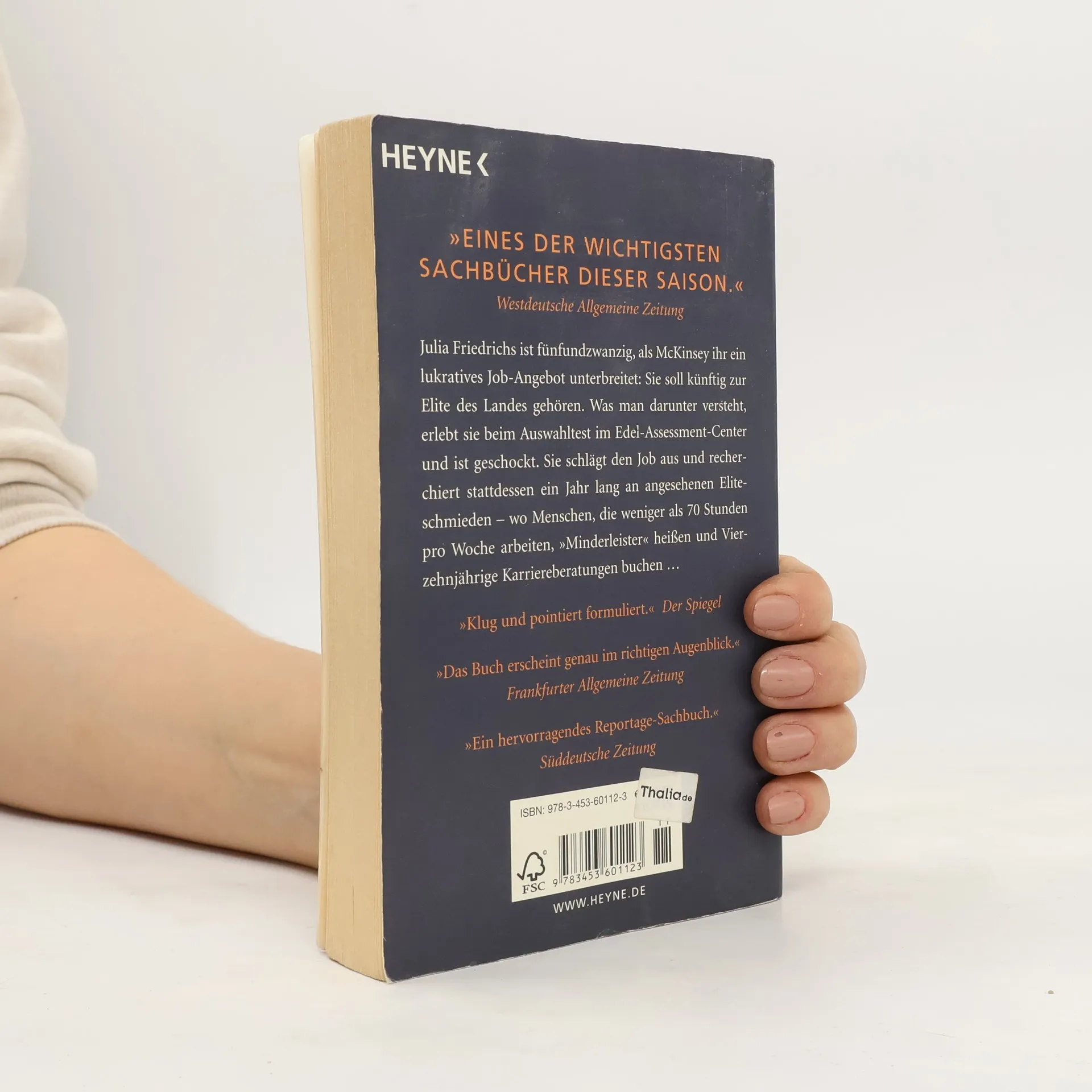 Ein höchst aufschlussreicher Einblick in Deutschlands angesehendste Eliteschmieden Julia Friedrichs ist fünfundzwanzig, als McKinsey ihr ein lukratives Job-Angebot macht: Sie soll künftig zur Elite des Landes gehören. Was man darunter versteht, erlebt sie beim Auswahltest im Edel-Assessment-Center – und ist schockiert. Sie schlägt den Job aus und recherchiert stattdessen ein Jahr lang an angesehenen Eliteschmieden – wo Menschen, die weniger als 70 Stunden pro Woche arbeiten, „Minderleister“ heißen und Vierzehnjährige Karriereberatungen buchen …