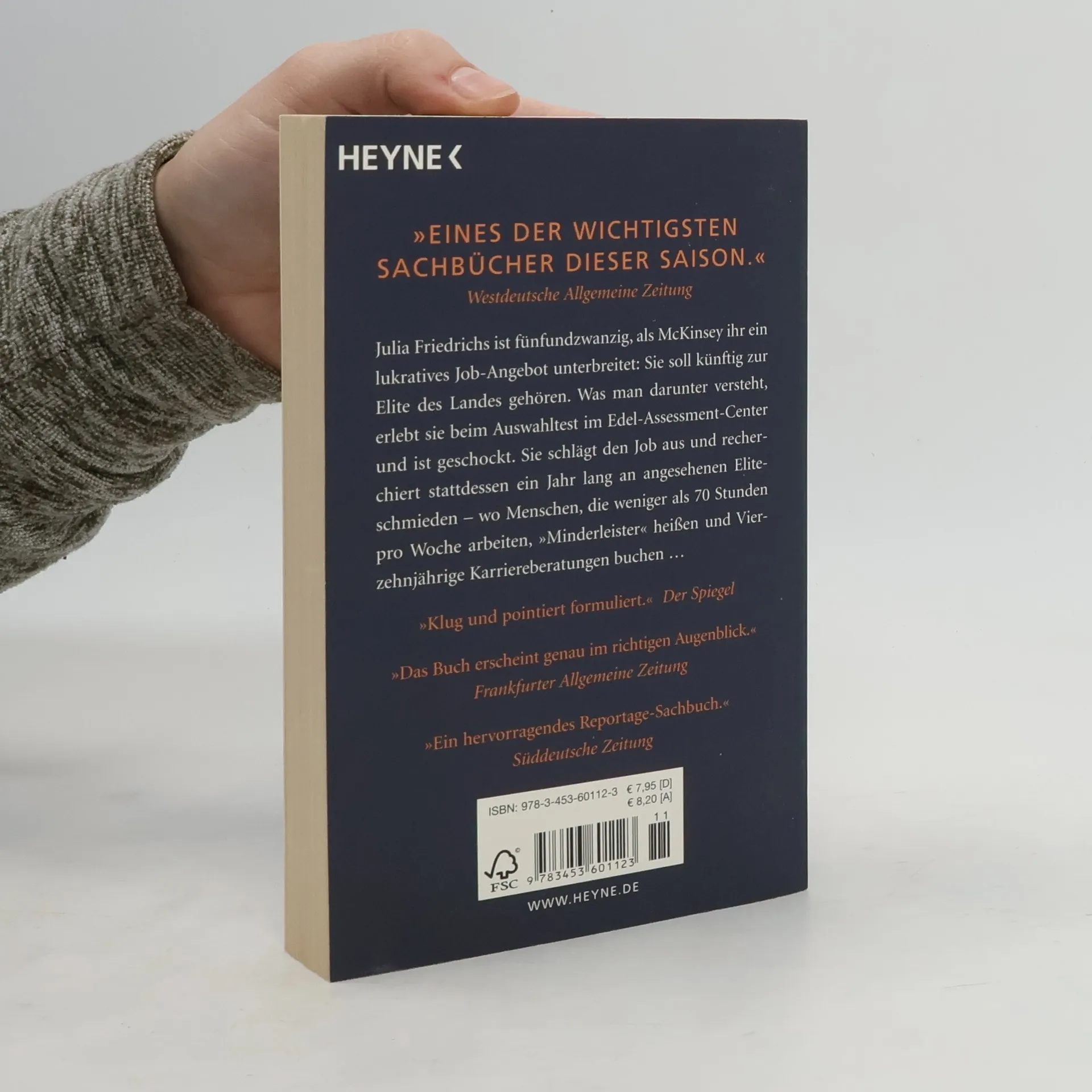 Ein höchst aufschlussreicher Einblick in Deutschlands angesehendste Eliteschmieden Julia Friedrichs ist fünfundzwanzig, als McKinsey ihr ein lukratives Job-Angebot macht: Sie soll künftig zur Elite des Landes gehören. Was man darunter versteht, erlebt sie beim Auswahltest im Edel-Assessment-Center – und ist schockiert. Sie schlägt den Job aus und recherchiert stattdessen ein Jahr lang an angesehenen Eliteschmieden – wo Menschen, die weniger als 70 Stunden pro Woche arbeiten, „Minderleister“ heißen und Vierzehnjährige Karriereberatungen buchen …