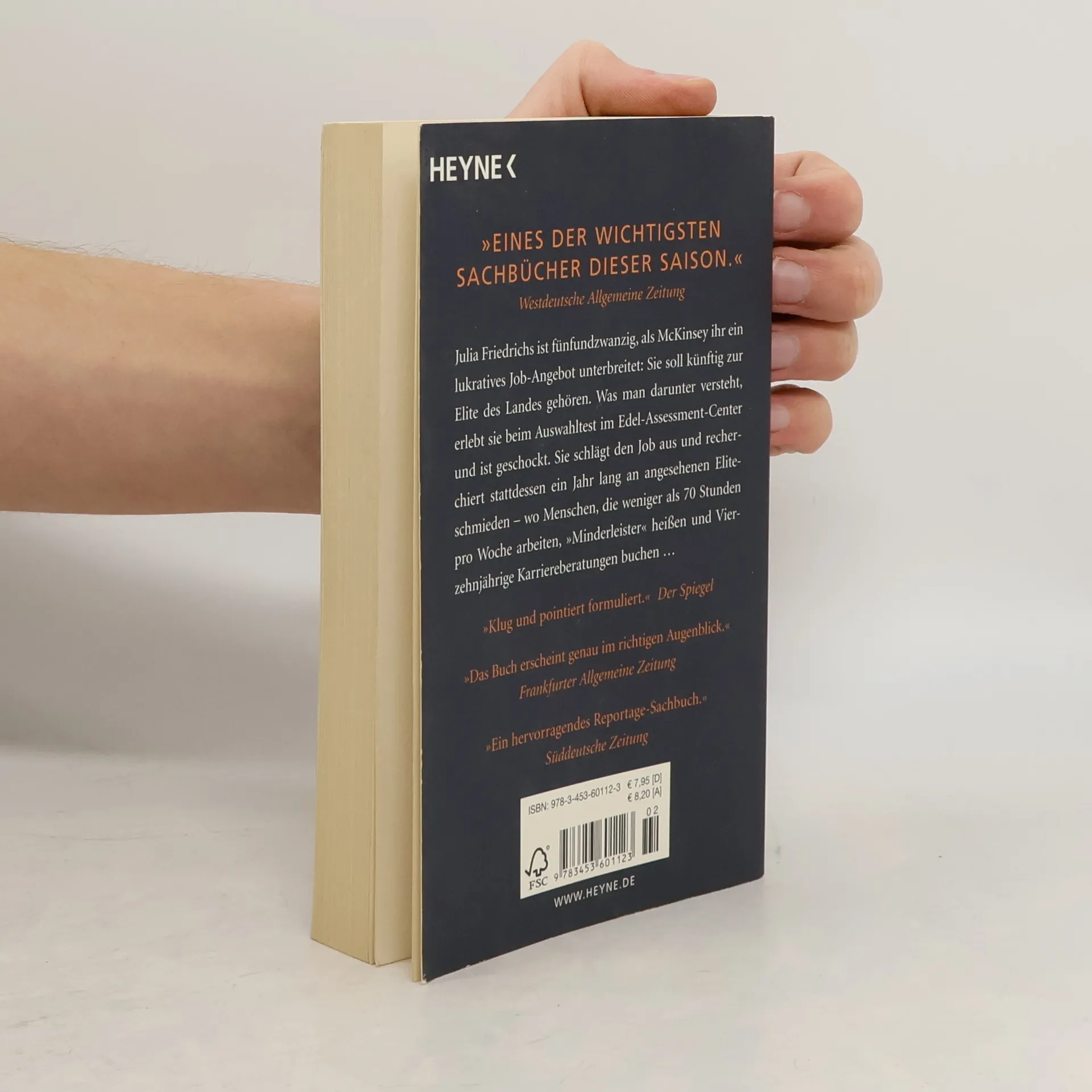 Ein höchst aufschlussreicher Einblick in Deutschlands angesehendste Eliteschmieden Julia Friedrichs ist fünfundzwanzig, als McKinsey ihr ein lukratives Job-Angebot macht: Sie soll künftig zur Elite des Landes gehören. Was man darunter versteht, erlebt sie beim Auswahltest im Edel-Assessment-Center – und ist schockiert. Sie schlägt den Job aus und recherchiert stattdessen ein Jahr lang an angesehenen Eliteschmieden – wo Menschen, die weniger als 70 Stunden pro Woche arbeiten, „Minderleister“ heißen und Vierzehnjährige Karriereberatungen buchen …