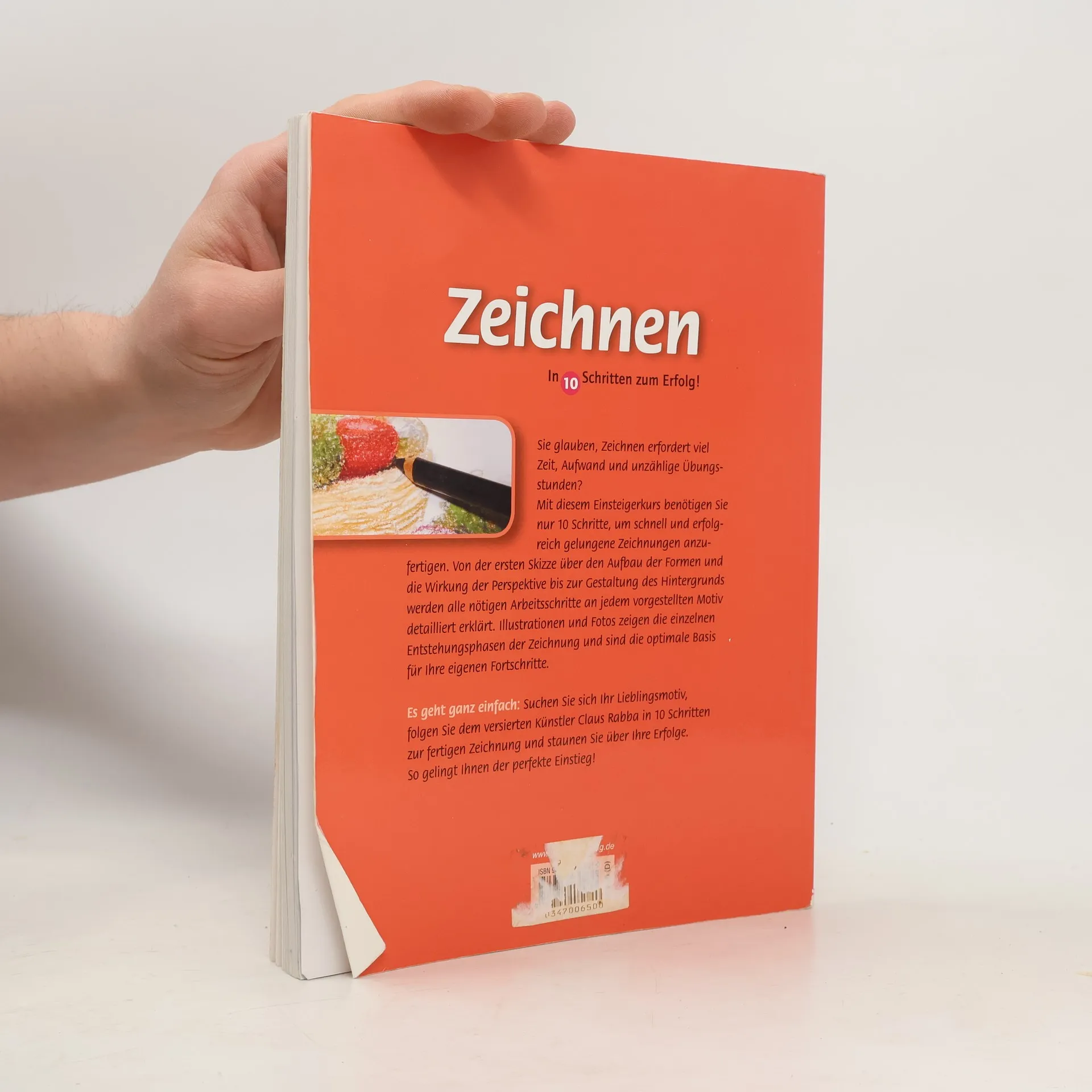 Mit diesem Einstiegskurs benötigt jeder nur 10 Schritte, um schnell und erfolgreich gelungene Zeichnungen und wunderschöne Aquarelle anzufertigen. Der Autor führt von der ersten Skizze und der Auswahl der Farben über den Aufbau der Formen und die Wirkung der Perspektive bis zur Gestaltung des Hintergrunds. Alle nötigen Arbeitsschritte werden an jedem vorgestellten Motiv detailliert erklärt. Illustrationen und Fotos zeigen die einzelnen Entstehungsphasen des Bildes und sind die optimale Basis für die eigenen Fortschritte. Es geht ganz leicht: Einfach das persönliche Lieblingsmotiv heraussuchen, dem versierten Künstler Claus Rabba in 10 Schritten zum fertigen Bild folgen – und schon kann jeder über eigene Erfolge staunen. Das ist der perfekte Einstieg!