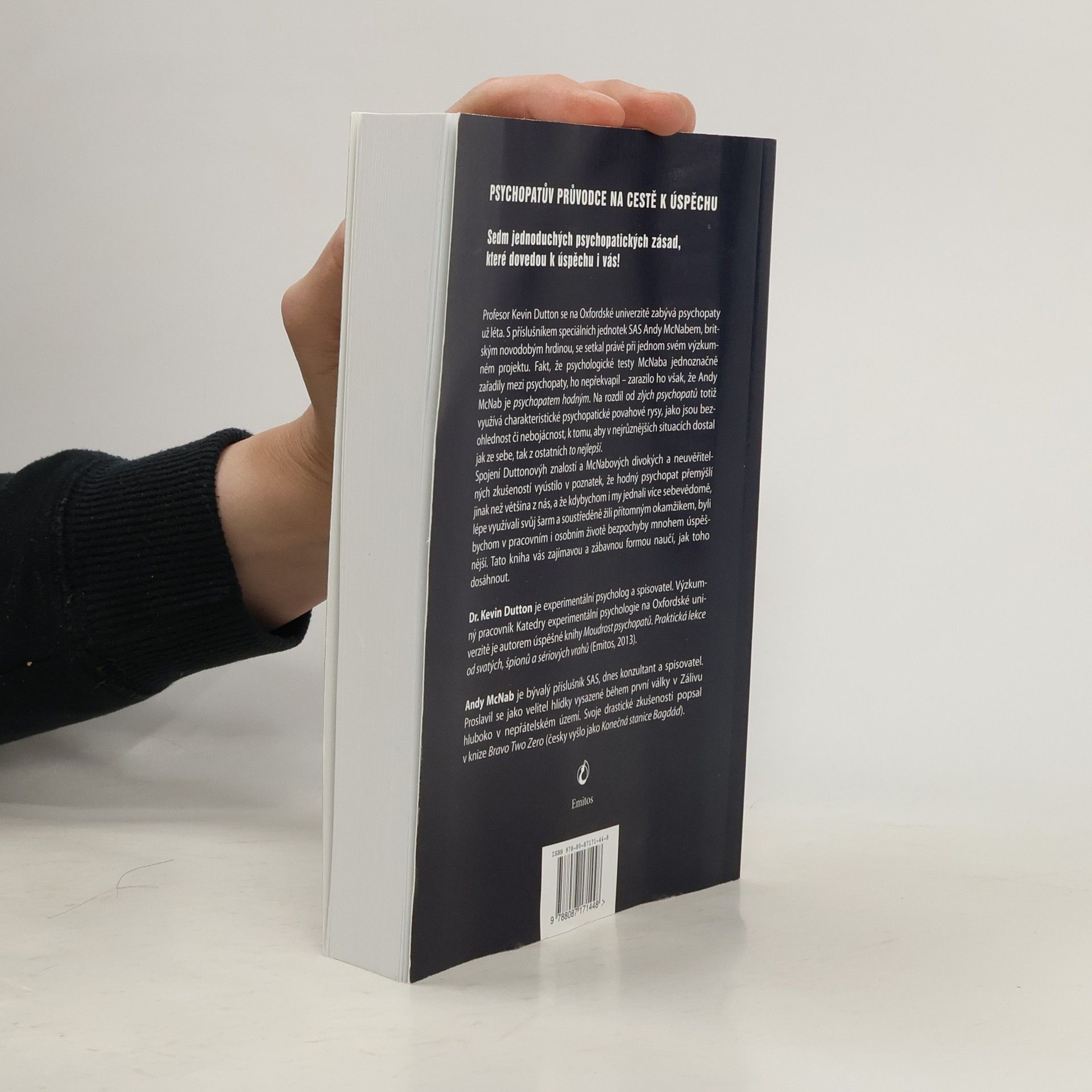 Profesor Kevin Dutton se na Oxfordské univerzitě zabývá psychopaty už léta. S příslušníkem speciálních jednotek SAS Andy McNabem, britským novodobým hrdinou, se setkal právě při jednom svém výzkumném projektu. Fakt, že psychologické testy McNaba jednoznačně zařadily mezi psychopaty, ho nepřekvapil – zarazilo ho však, že Andy McNab je psychopatem hodným. Na rozdíl od zlých psychopatů totiž využívá charakteristické psychopatické povahové rysy, jako jsou bezohlednost či odvaha, k tomu, aby v nejrůznějších situacích dostal jak ze sebe, tak z ostatních to nejlepší. Spojení McNabových divokých a neuvěřitelných zkušeností a Duttonových znalostí vyústilo v poznatek, že hodný psychopat přemýšlí jinak než většina z nás, a že kdybychom i my dokázali prohloubit a lépe využívat vlastnosti jako šarm, chladnokrevnost, sebevědomí nebo odvahu, byli bychom v pracovním i osobním životě bezpochyby mnohem úspěšnější. V této knize se zajímavou a zábavnou formou naučíte, jak toho dosáhnout.